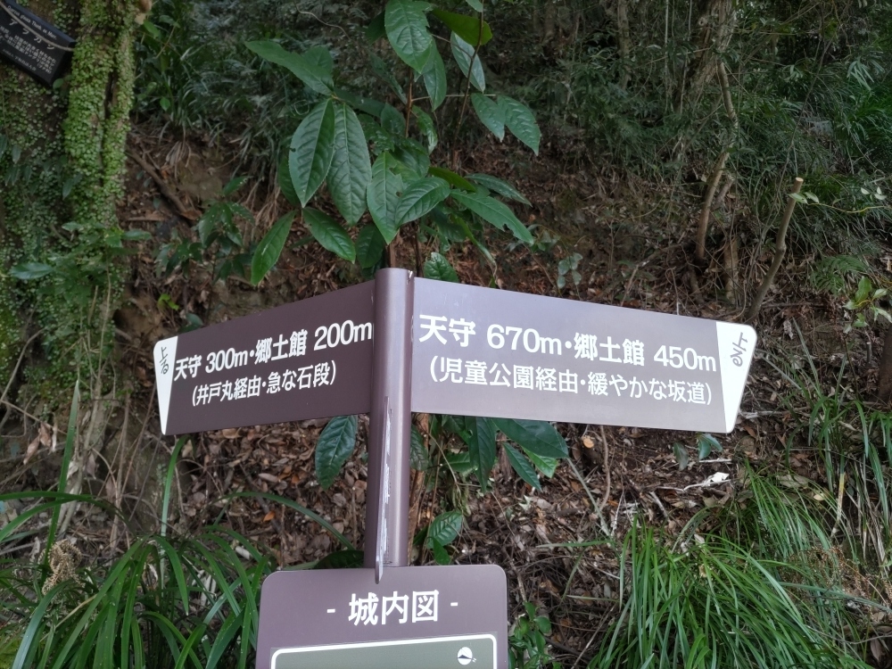 ここから石段を登り藤兵衛丸の城山郷土館を覗いて二ノ丸経由で本丸に行った。