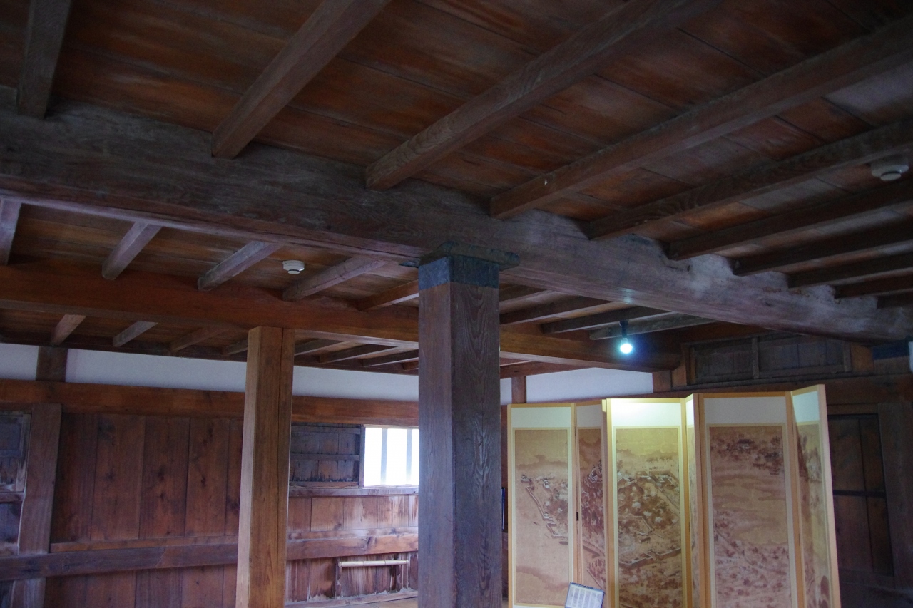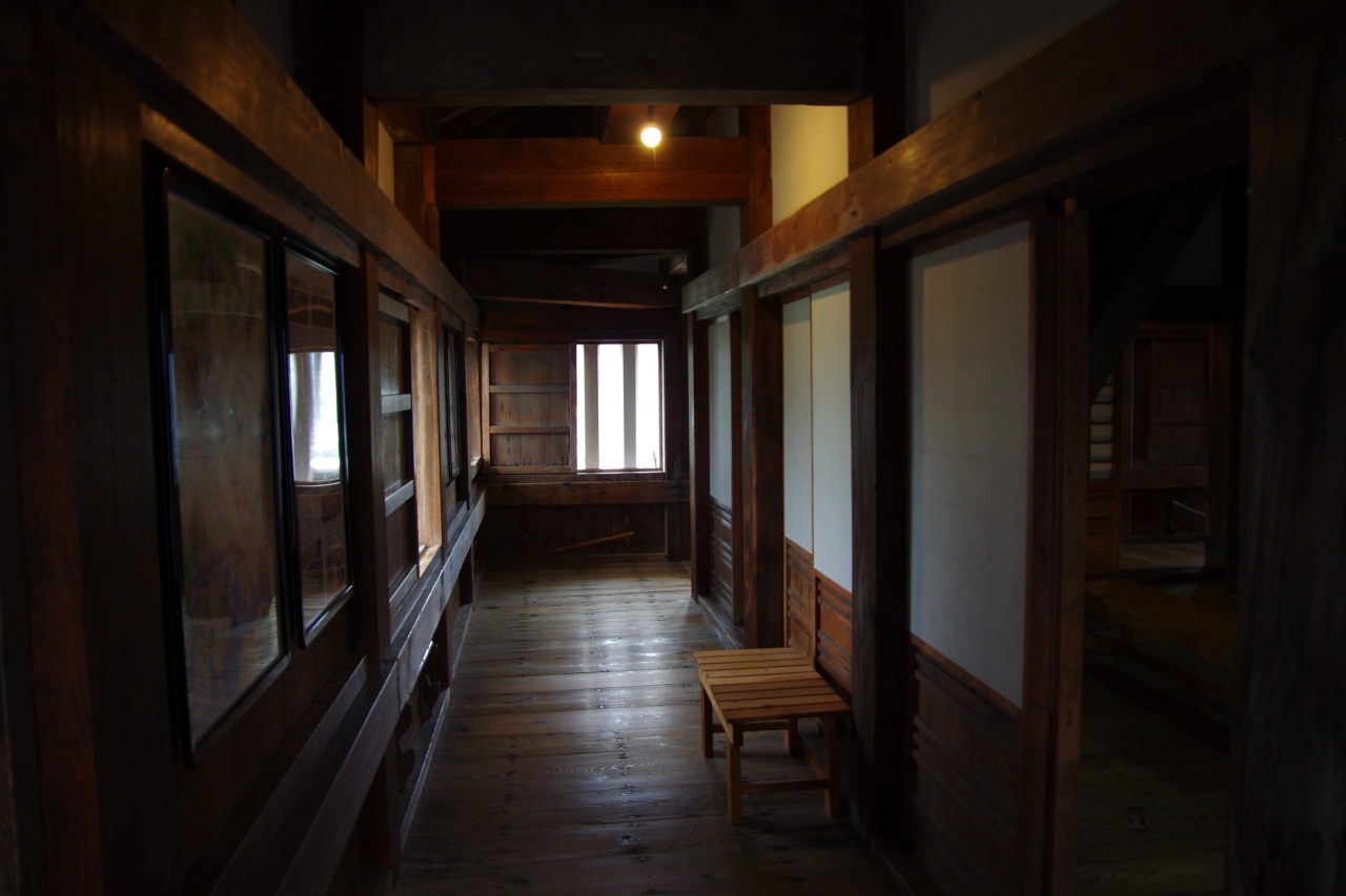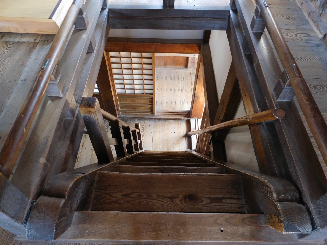 天守自体はかなりこじんまりしていて、外履きも袋で持ち歩き方式(犬山城、姫路城など)や下駄箱に入れる式(松江城、丸亀城)ではなく、入り口にぬぎっぱなし方式。