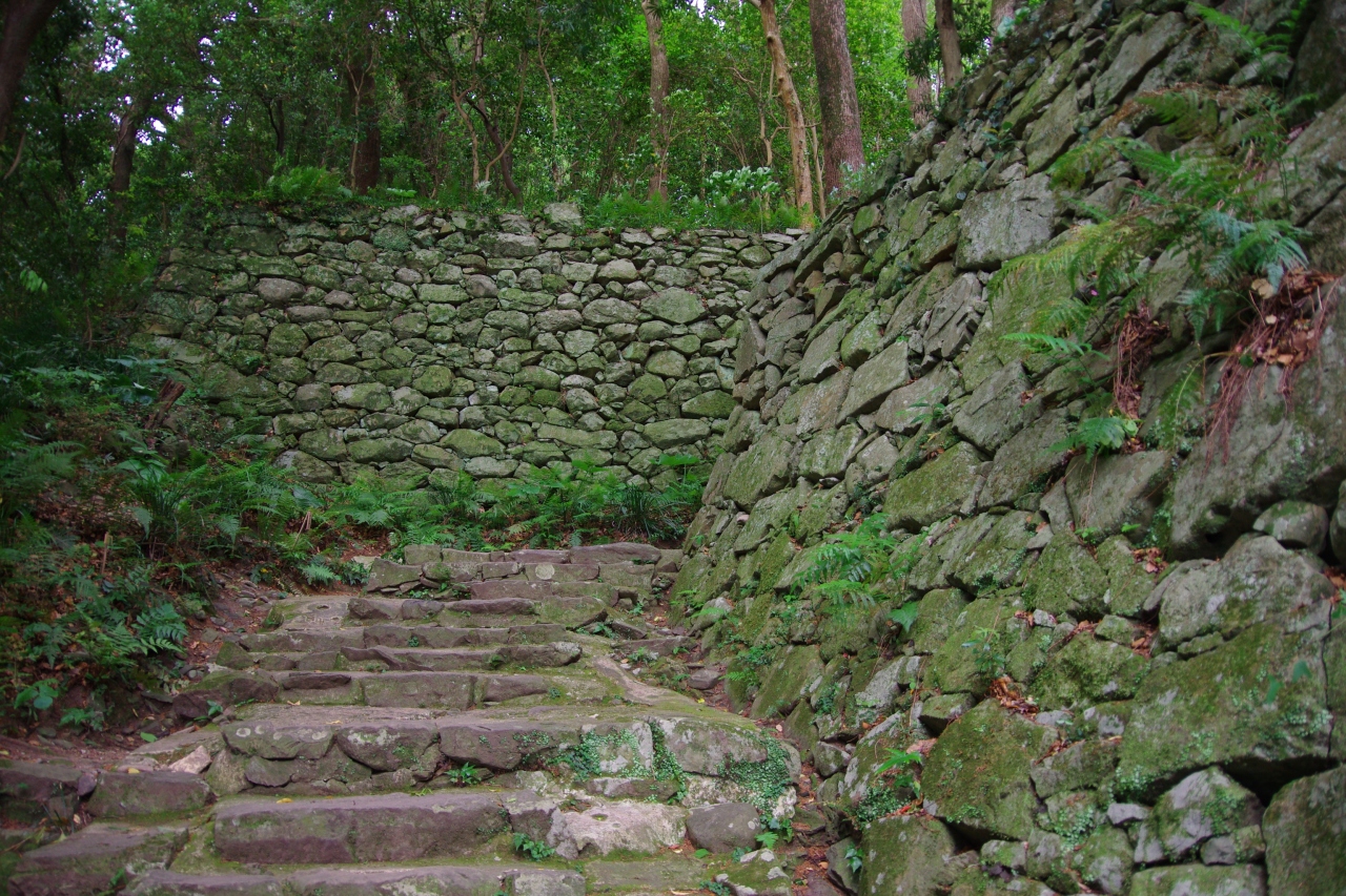 城山東北門から登りました。登城口から続く石段は現存するもので石を積み上げた階段で