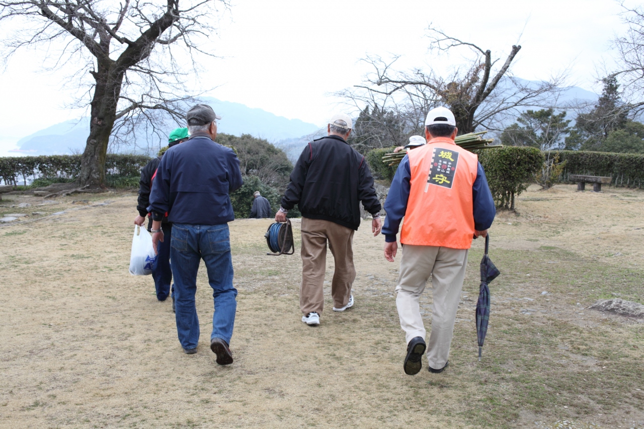 狭間が無い天守って他にあるでしょうか? 1666年に建てられた二代目天守なので、平和な時代だったのでしょう。小さいですが、唐破風・千鳥破風で飾られた美しい天守です。 ボランティアの方々が蜜柑を配ってくれていました。美味しかったです。