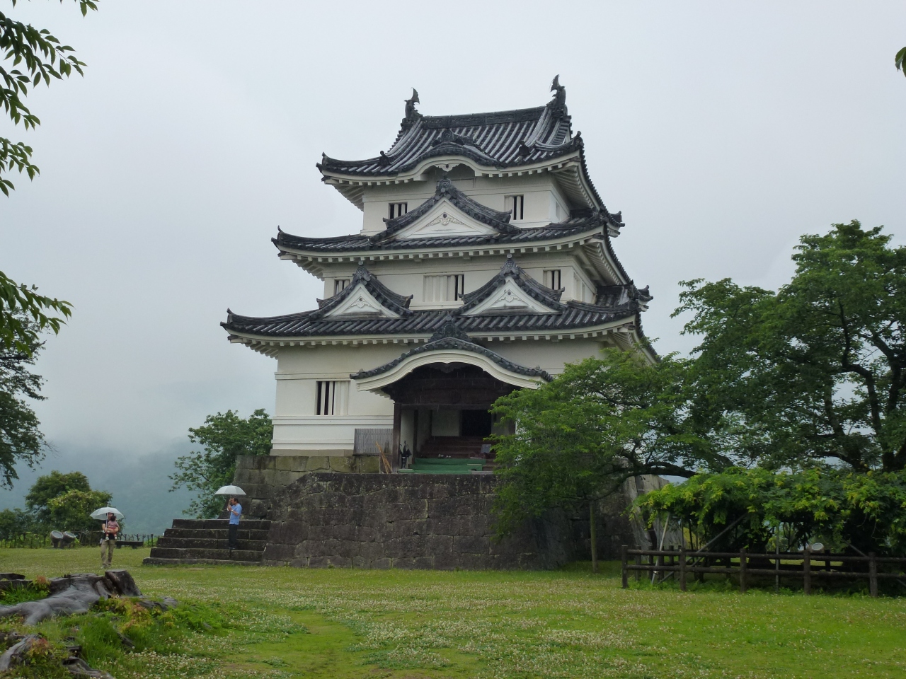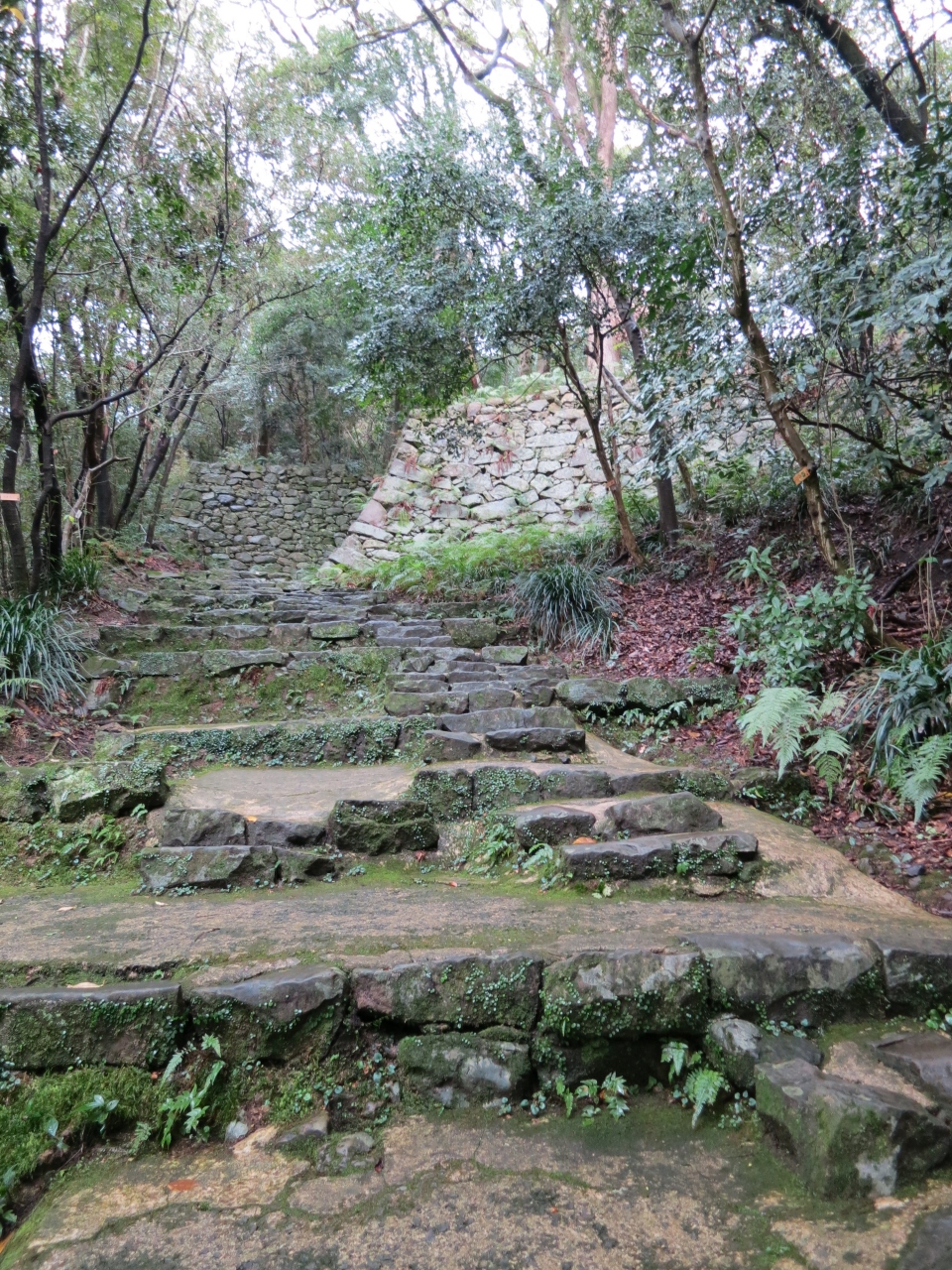 木々に囲... 続きを読むまれてしっとりと苔むした上りにくい石段を上がっていくと、見事な高石垣が出迎えます。本丸の御門跡の階段を上がると、本丸の奥に小さな現存天守が見えます。