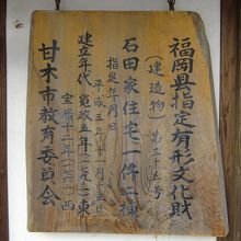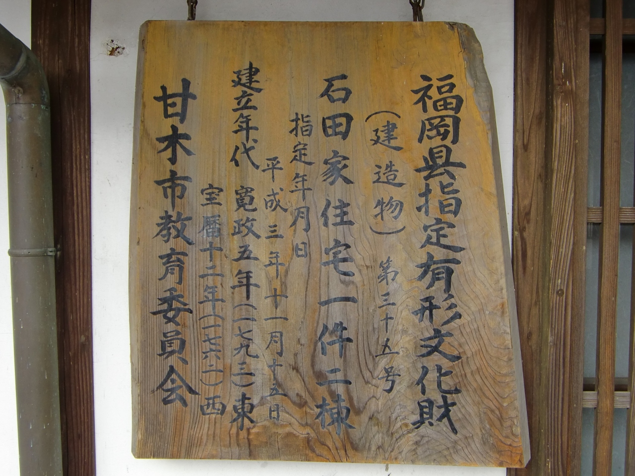 「杉の馬場」を長屋門へとお散歩し雛めぐり最大の見どころである「長屋門のお雛さん」を観賞してきました。この「石田家住宅」は少... 続きを読む々離れた秋月街道沿いにあります。「石田家住宅」は秋月藩政時代の御用商人遠藤家が建設した町家ですが1762年(宝暦12)の大火で焼失しました。その後1800年頃までに再建され現在に至っています。外観のみの見学で内部見学はできませんが「朝倉市秋月地区伝統的建造物群保存地区」の伝統的建築物のひとつとして末永く残していただきたいものです。 閉じる
