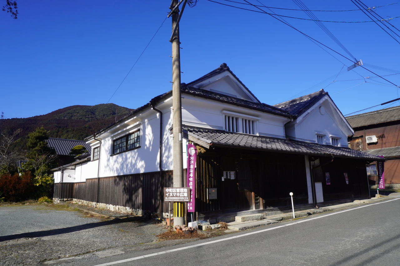 秋月城下町の町屋地区の中心部にある県指定有形文化財。「みせ」「なかのま」「ざしき」が一列に並ぶ典型的な町家(商家)が並行して建っています。外観のみ観覧できます。