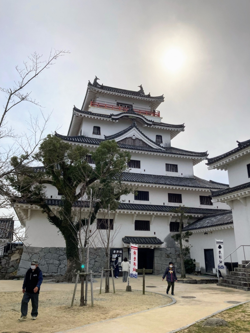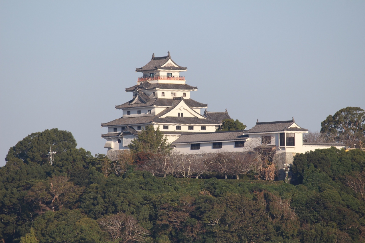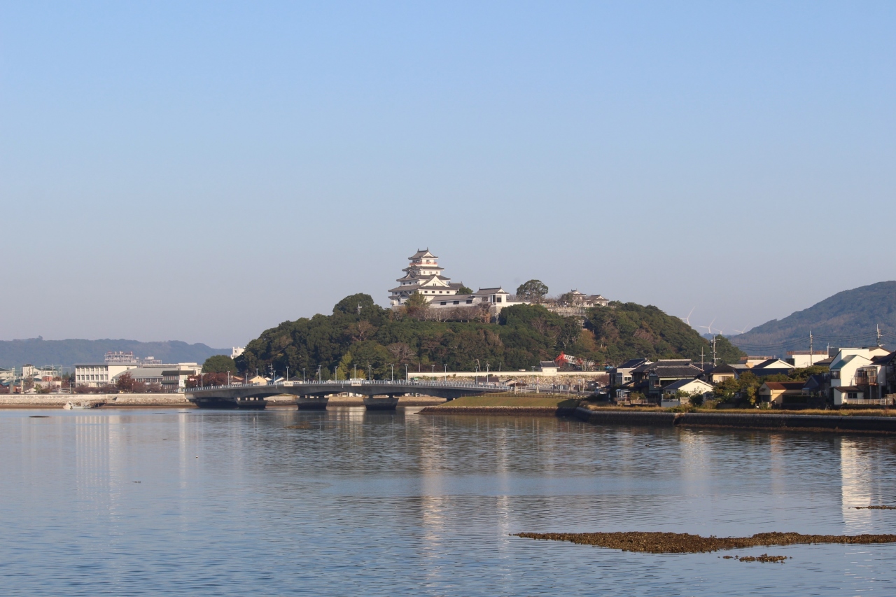 舞鶴城と呼ばれる海辺の丘に建つ城