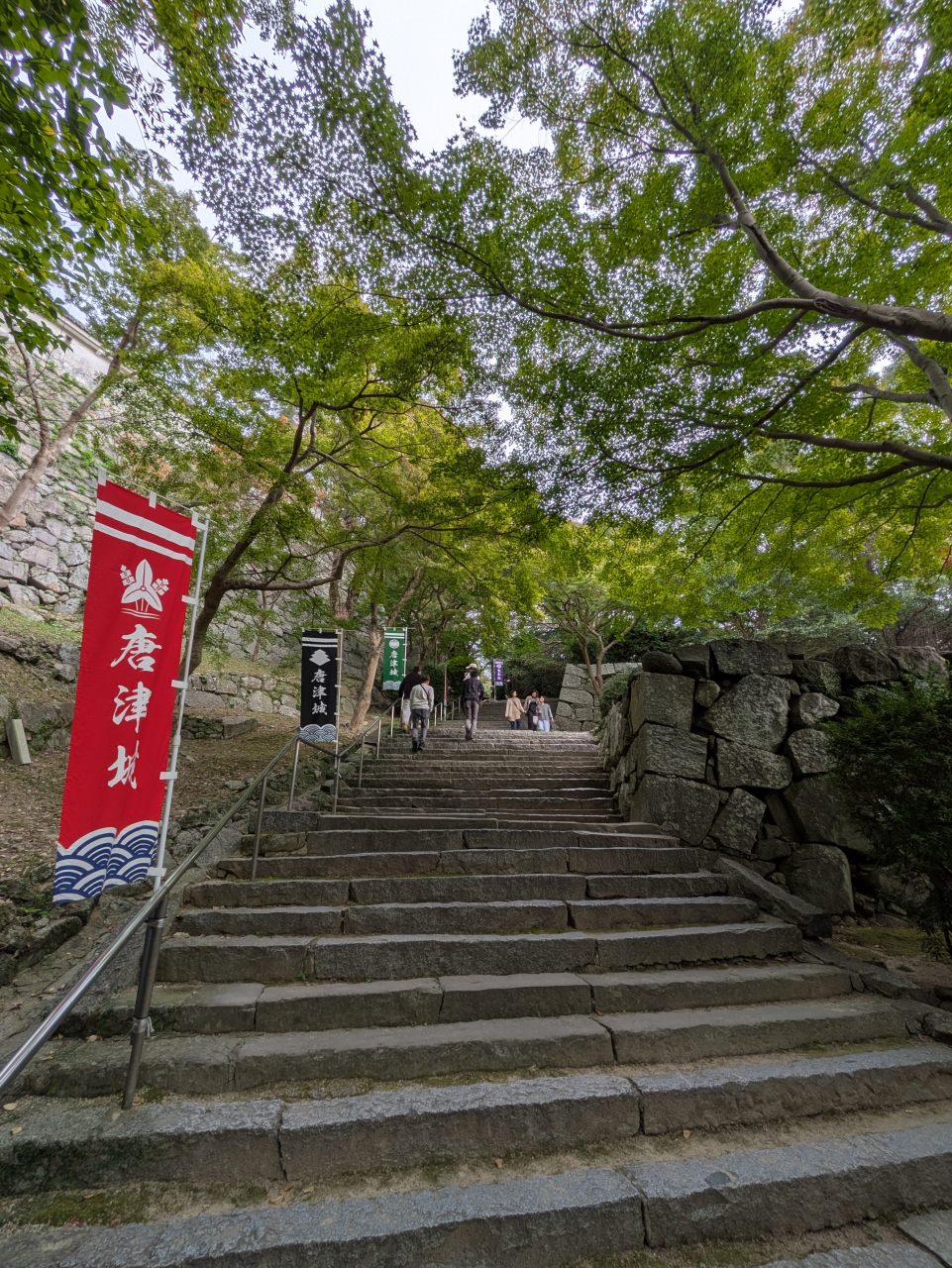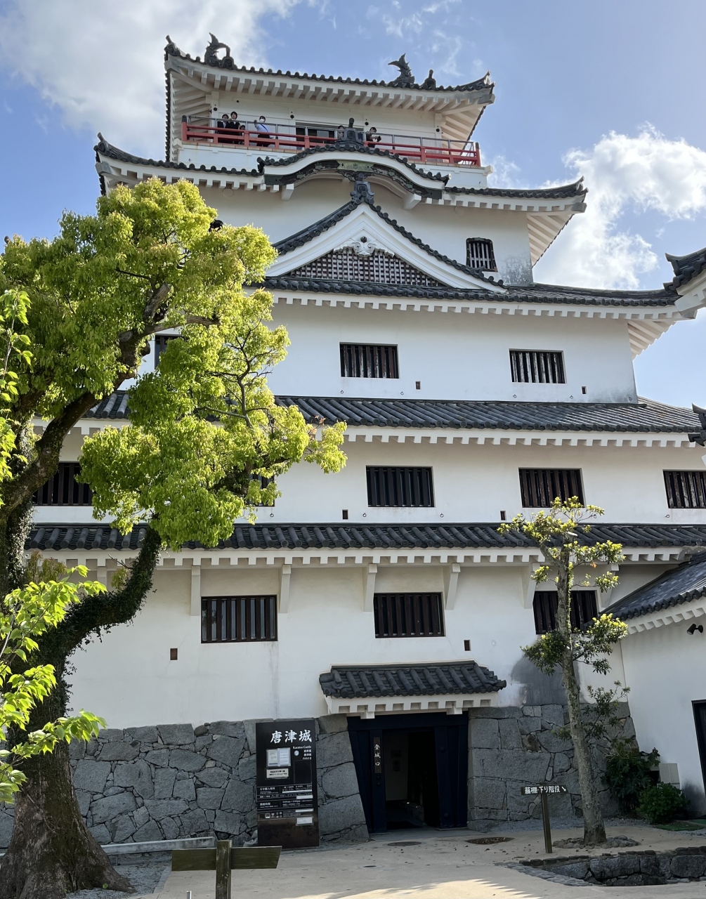 松浦川が唐津湾に注ぐ河口の左岸、唐津湾に突き出た満島山の山の上に築城された城である。現在の天守閣は昭和中期に建造された模擬... 続きを読む天守。記録上では江戸時代初期に築城された、とされているが、発掘調査でより古い時代の石垣が発見され、本来の築城年代について現在議論されている。 天守閣まで約200段の階段を登る必要があるが、幸い勾配はそれ程大きくはなく、比較的登りやすい。その一方で有料で利用できるエレベーターもある。 唐津城は別名『舞鶴城』と呼ばれ、満島山一帯が『舞鶴公園』として整備されている。城の内部や周辺だけでなく公園一帯も綺麗に整えられており、地域住民に長く愛されている城であり、公園であることが窺える。春になると山頂の桜が一斉に花開き、地域住民だけでなく多くの観光客が花見に訪れる。 満島山山頂まではエレベーターで昇降できるが、唐津城内部にはエレベーターは無く階段のみである。唐津藩主に代々伝わる甲冑や薙刀、絵図等が展示されているが、多くが唐津藩の藩主を勤めた一族についての説明であり、しかもほとんどが日本語での説明であるため、外国人観光客にはやや物足りないと感じるかもしれない。展示物がある2階と3階のフロアは撮影禁止であるものの、各展示の補足説明をスマートフォンで見るためのQRコードが数か所設置されているところに、違和感を感じるかもしれない。 天守閣の最上階の展望スペースは是非とも訪れてほしい。唐津湾の素晴らしい風景を眺めることが出来る。転落防止の柵はあるものの成人の胸の高さ程度であるため、落とし物や風が強い日の帽子等の吹き飛ばされには注意されたい。 This castle stands atop Mt.Mitsushima, a hill that juts into Karatsu Bay at the left bank where the Matsuura River flows into the sea. The current keep is a reconstruction built in the mid-Showa era; although records suggest the original castle was constructed in the early Edo period, archaeological excavations have uncovered older stone walls, and the true date of its founding is still being debated. Reaching the keep requires climbing roughly 200 steps. Fortunately, the slope is moderate and manageable, and there is also a paid elevator available as an alternative. Karatsu Castle is also known as "Maizuru Castle", and the entire Mt.Mitsushima area has been developed into Maizuru Park. Both the interior of the castle and the surrounding park are well maintained, clearly reflecting how long the site has been loved by local residents. In spring, the cherry blossoms around the hilltop bloom spectacularly, attracting both locals and many visitors for hanami. Although an elevator can take you up to the summit of Mt.Mitsushima, the interior of the castle itself has no elevators - only stairs. The displays inside include armor, polearms, maps, and other items passed down through generations of the Karatsu domain's ruling families. However, most explanations focus on the clans that governed the area and are presented almost entirely in Japanese, which may feel insufficient for international visitors. Photography is prohibited on the second and third floors where the exhibits are located, yet QR codes for supplementary information are installed in several spots - something that may feel slightly inconsistent. The observation deck on the top floor of the keep is a must-visit. It offers a stunning panoramic view of Karatsu Bay. While there is a safety railing, it reaches only about chest height for an adult, so be careful with loose items - especially hats on windy days - to avoid them being blown away. 閉じる