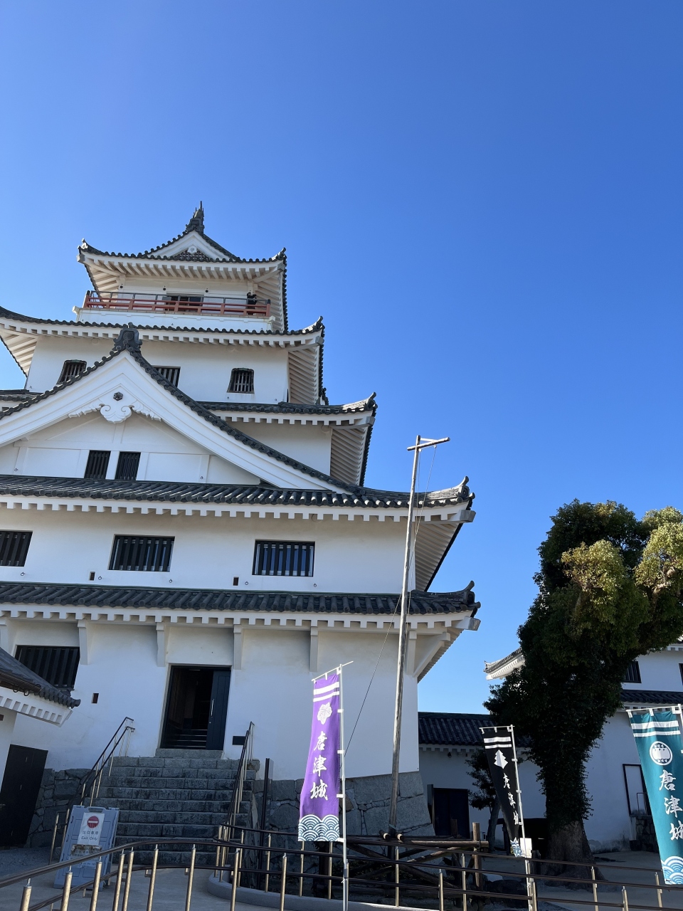 海辺に突き出た丘の上に立つ城で、天守閣を頭、左右に広がる砂浜を翼に見立てると、鶴が翼を広げた姿に見えるということで「舞鶴城... 続きを読む」とも呼ばれ、唐津市のシンボル的な存在となっています。唐津駅から公共交通機関を使って訪れることもできますが、私は途中にある唐津神社に立ち寄ったり、昼食をとりながら徒歩で向かいました。駅から直接向かっても徒歩20分位なので、途中の風景を眺めながら歩いてみてはどうでしょうか。