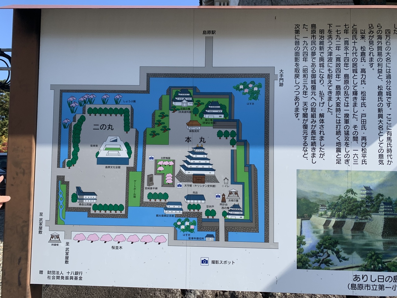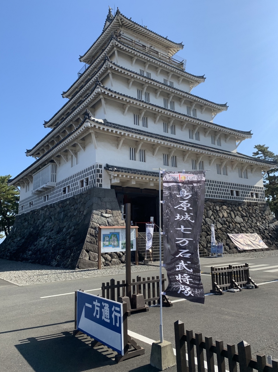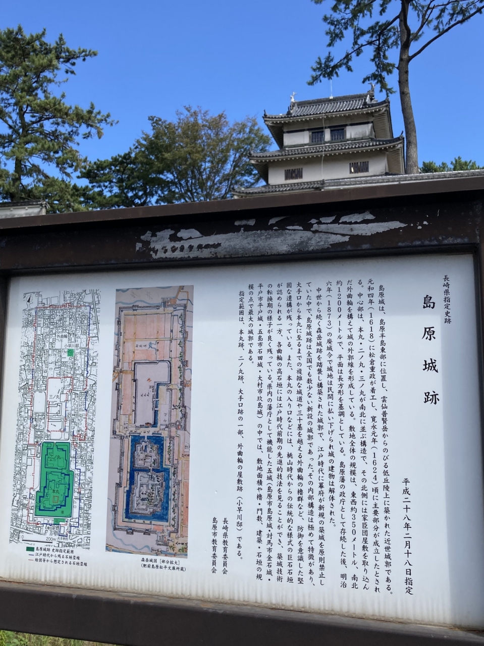 長崎県南東部に位置する島原半島の中心に武家屋敷、城下町の街並みが残る島原湾の直ぐそばにあり、九州外洋大名への押さえへとして... 続きを読む築かれたお城です。松倉重政により築城されキリシタンの弾圧をうけ過酷な年貢などが要因となって島原一揆が起こり一部の建物が壊されてしまい、1964年に再建された五重天守閣、幾重にも屈曲した高石垣は見事で大変美しく見どころになっています。そして現在は城跡が長崎県指定史跡に指定され、日本百名城に選定されています。南東側からの景観が美しく高石垣もよくわかります。お城の姿も美しいのですが全長約17mもある松や櫓で展示されている品々も見どころですよ。 閉じる