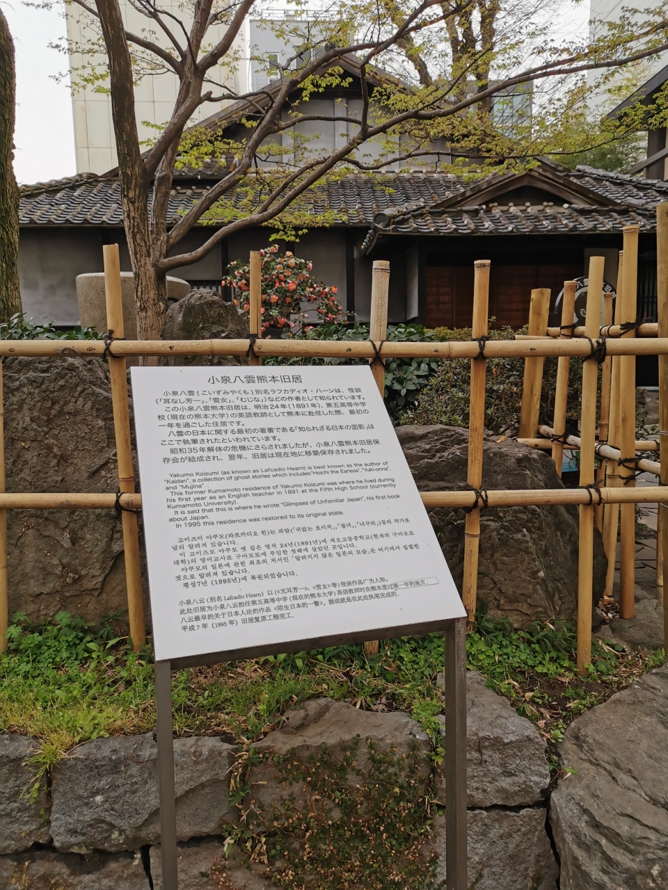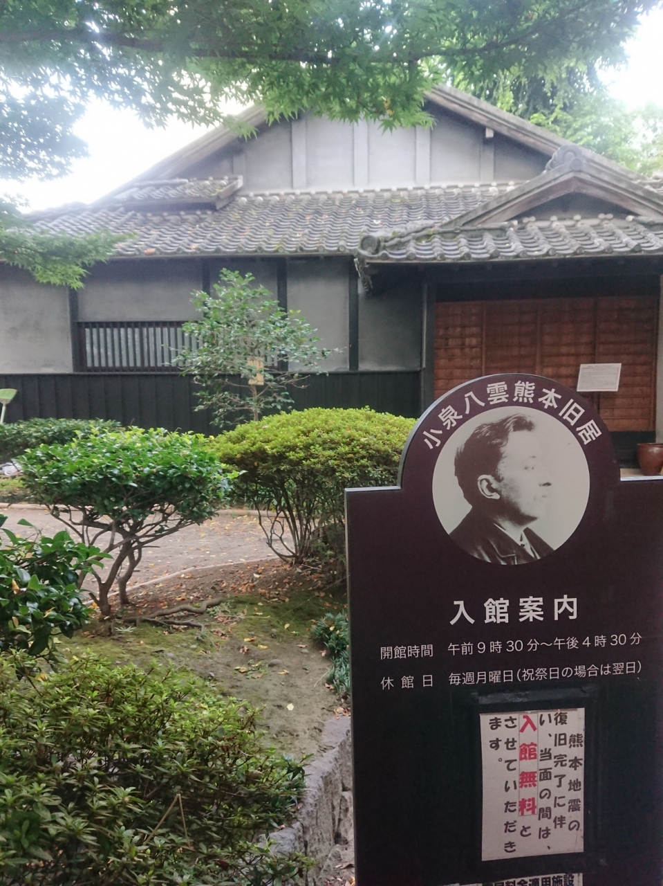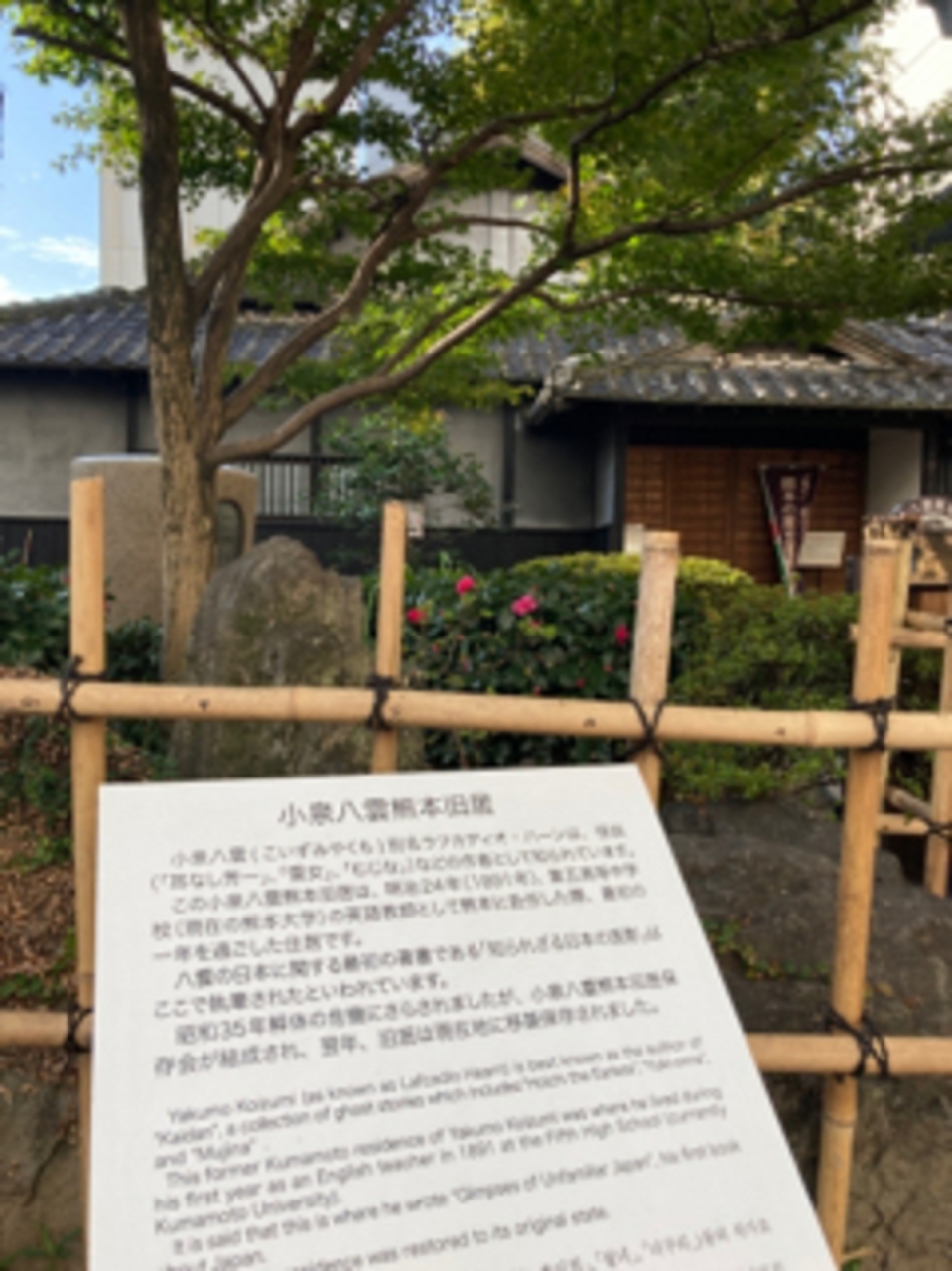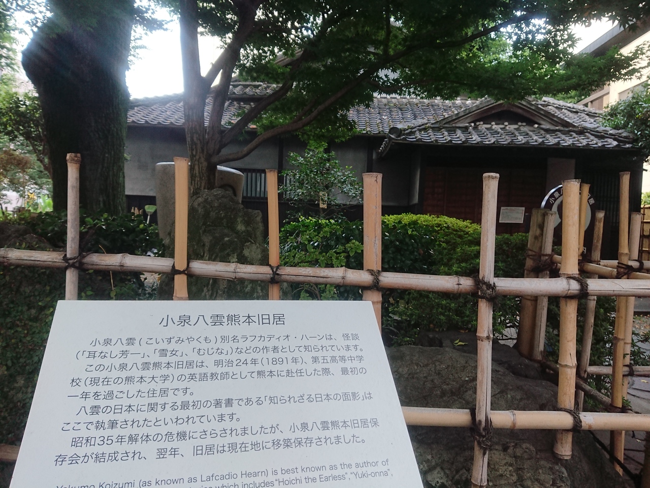 怪談「耳なし芳一」「雪女」を書いた小泉八雲(ラフカディオ・ハーン)が五高の教師時代に暮した家で、八雲ゆかりの品が展示されている。八雲(ラフカディオ・ハーン)は明治24年に五高の教師として赴任し3年余りを過ごした。「知られぬ日本の面影」など多くの名作が熊本での貴重な体験から生まれている。