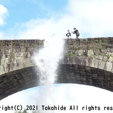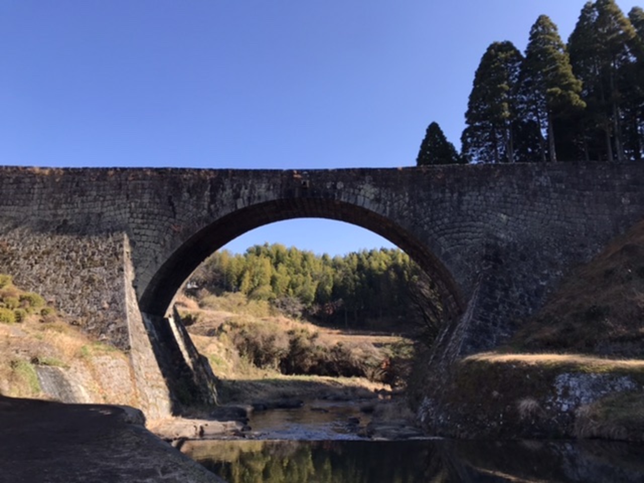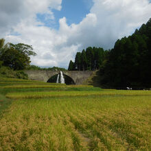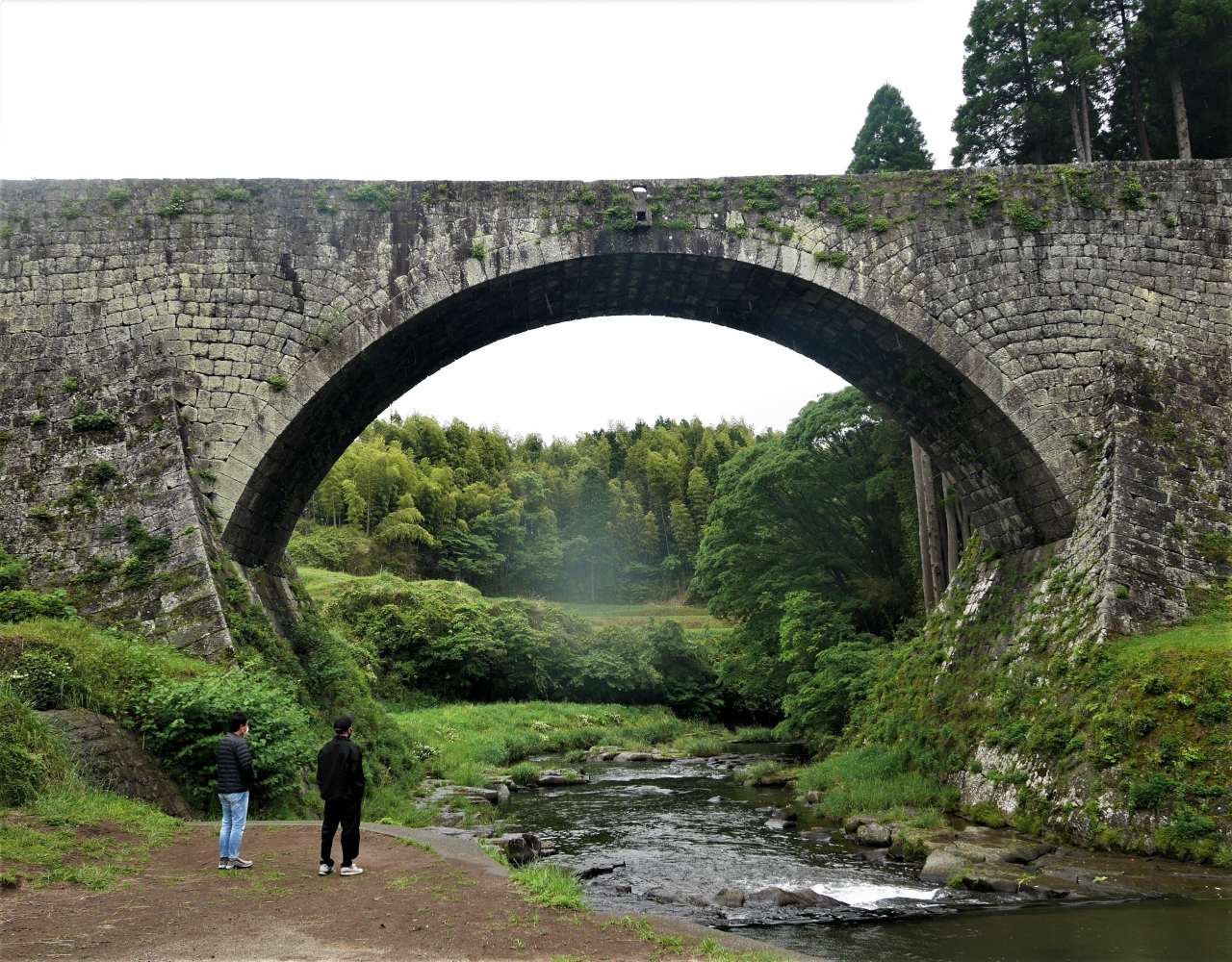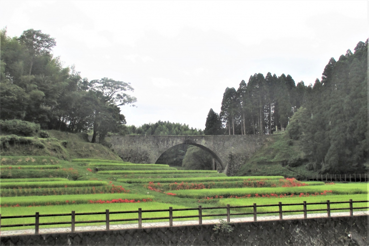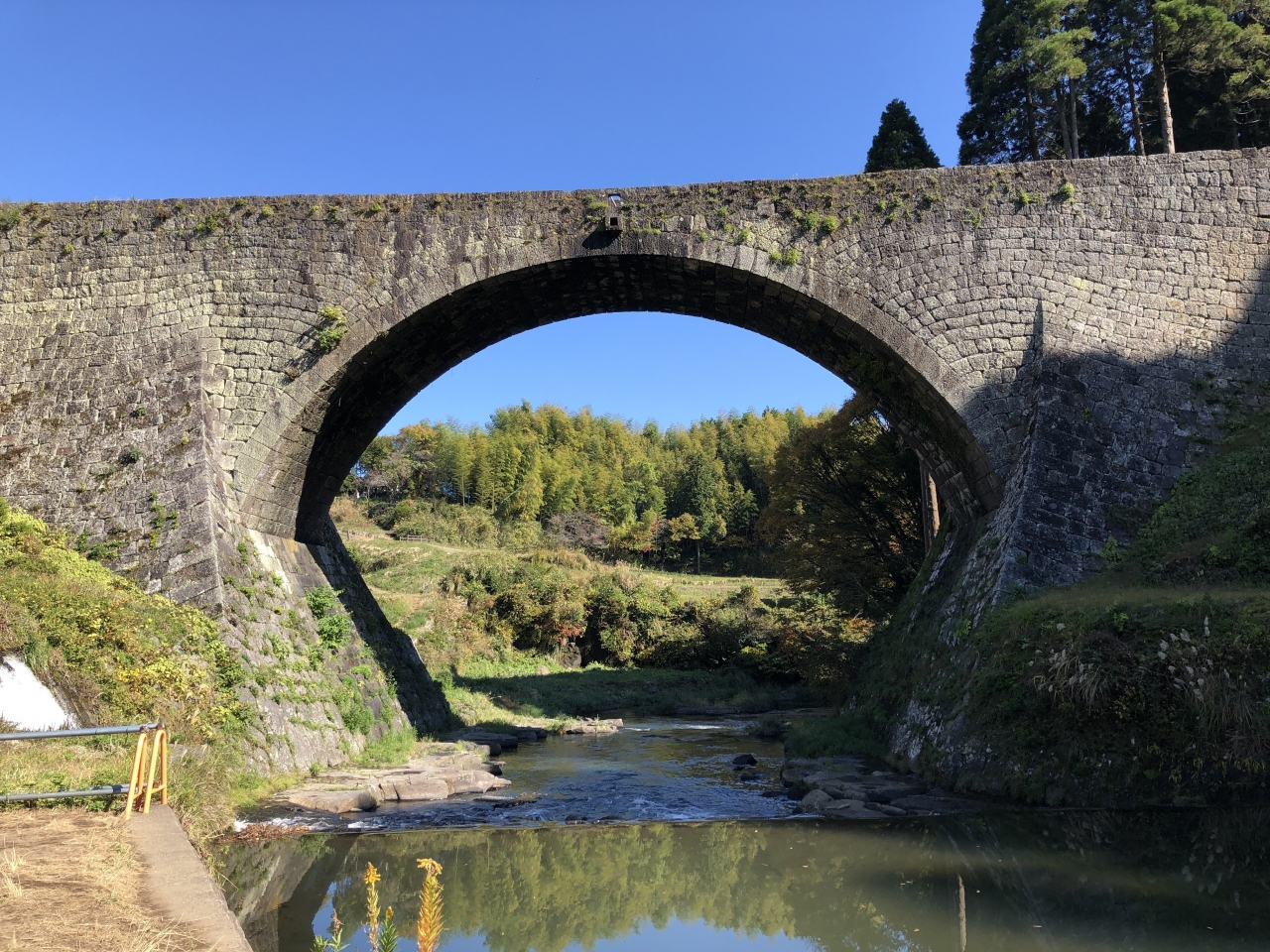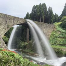 嘉永7年(1854年)、水不足に悩む白糸台地に水を送るため、矢部の惣庄屋布田保之助が全力を傾けて造った日本最大級の石造アーチ水路橋である。種山石工の技術を結集したこの橋は、高さ約20m、橋上の幅6,3m、アーチの水路28,18mで中央には飲用と潅漑用の3本の水道が通っている。水道は一方の高い所に取水口を設け、平坦な橋を通り、その勢いで対岸の高い所に水を吹き上げる逆サイホンの原理を応用、一昼夜で15,000立方mの水を送り、100haの水田を潤す力を備えている。水圧や地震に充分耐え得るような鞘石垣や鎖石の工法を用いた高度な技術力と、均整のとれた美しさが高く評価され、昭和35年には国の重要文化財に指定された。