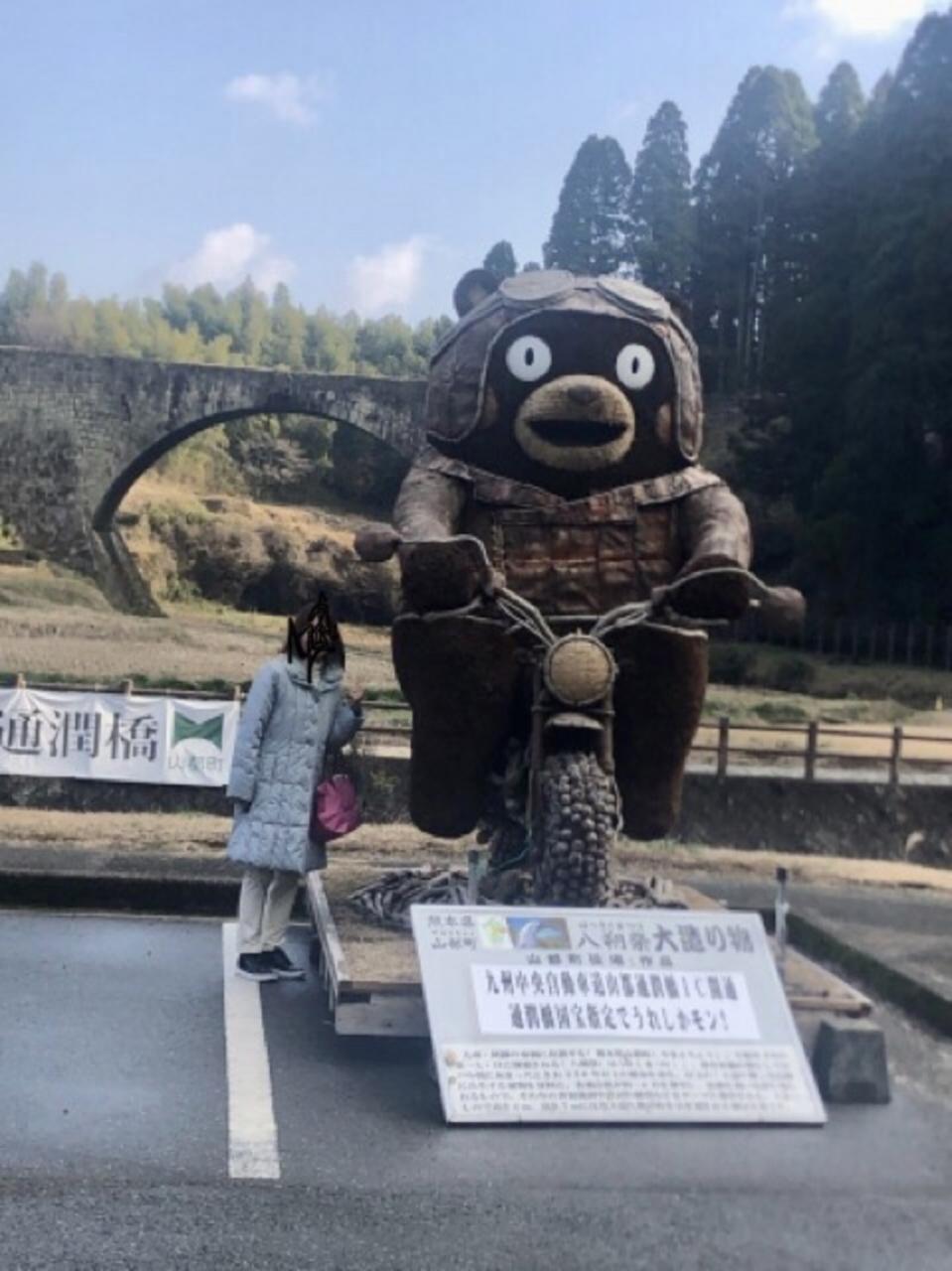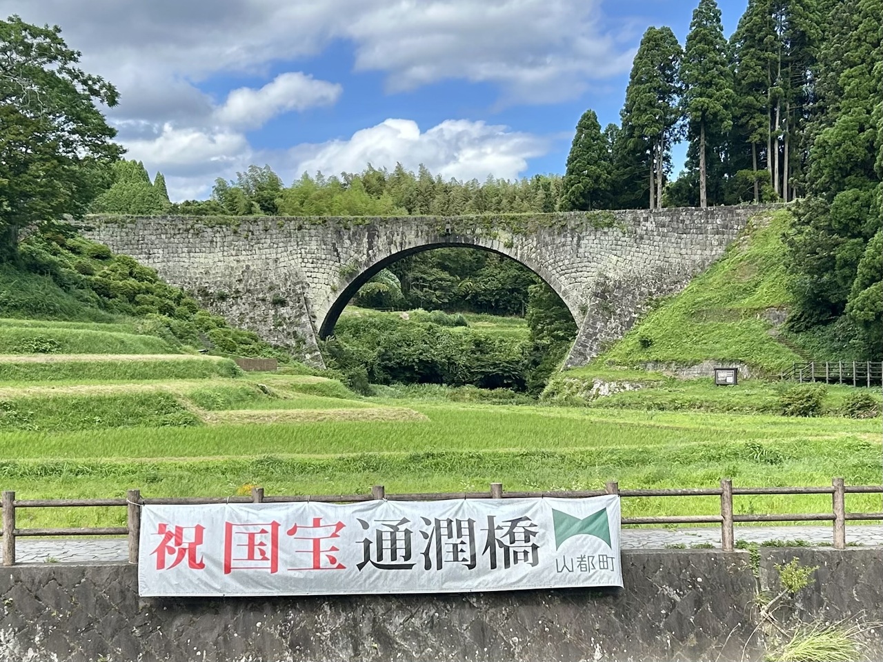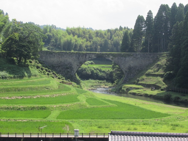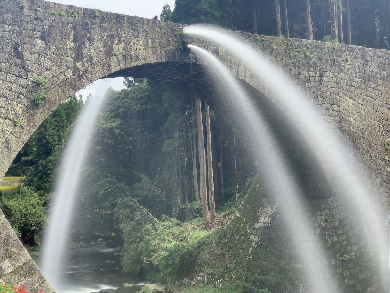 今年国宝になったという事で、高千穂から山鹿温泉に行く道中に寄ってみる事にしましたが、ナビで案内された駐車場から通潤橋が見え... 続きを読むる場所まで行くのはかなりのアップダウンのある道を通って行かなくてはならず、暑い夏場に行くには不適当な場所だと思った。また案内板がほとんど無く本当に着くのかどうか不安なまま歩く事になった。途中、60m級の立派な滝があるが、そこからまだまだ歩かねばならない。やっとこさ橋が見える所に到着したかと思えば、橋の向こうに見える道の駅通潤からの方が美しく見えるばかりでなく、車で行けるので疲れる事もない。現地駐車場でこういう告知をちゃんとして欲しいと思った。 あと、水を放流する際には事前予約で橋の上から眺める事が出来るらしく、我々が着いた駐車場は橋の上に行く為のものであること。通常は道の駅から眺めるので充分なのに時間と体力を無駄にした気がして残念でした。 閉じる