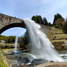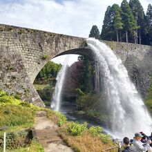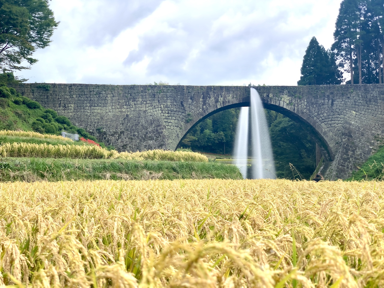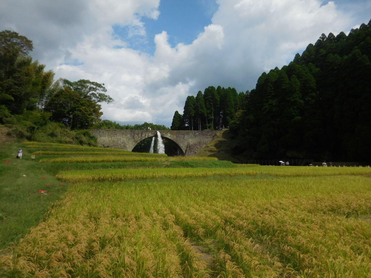 数年前にテレビで観るまでその存在を知りませんでした。 橋の少し手前には通潤橋の建設に携わった布田保之助さんの立像がありま... 続きを読むす。 地元の名士だそうです。以来150年以上にわたって通潤橋は農業用水の供給に今も機能しているそうです。 放水時間が13:00から15分間と決まっているので時間が近づくとどんどん人が集まってきます。有料にはなりますが橋の上に上がることもできます。柵もないようなので結構怖そうです(私は上がりませんでした)。 放水は想像以上に迫力がありました。周りの田園風景とも相まって素晴らしい景色でした。 閉じる