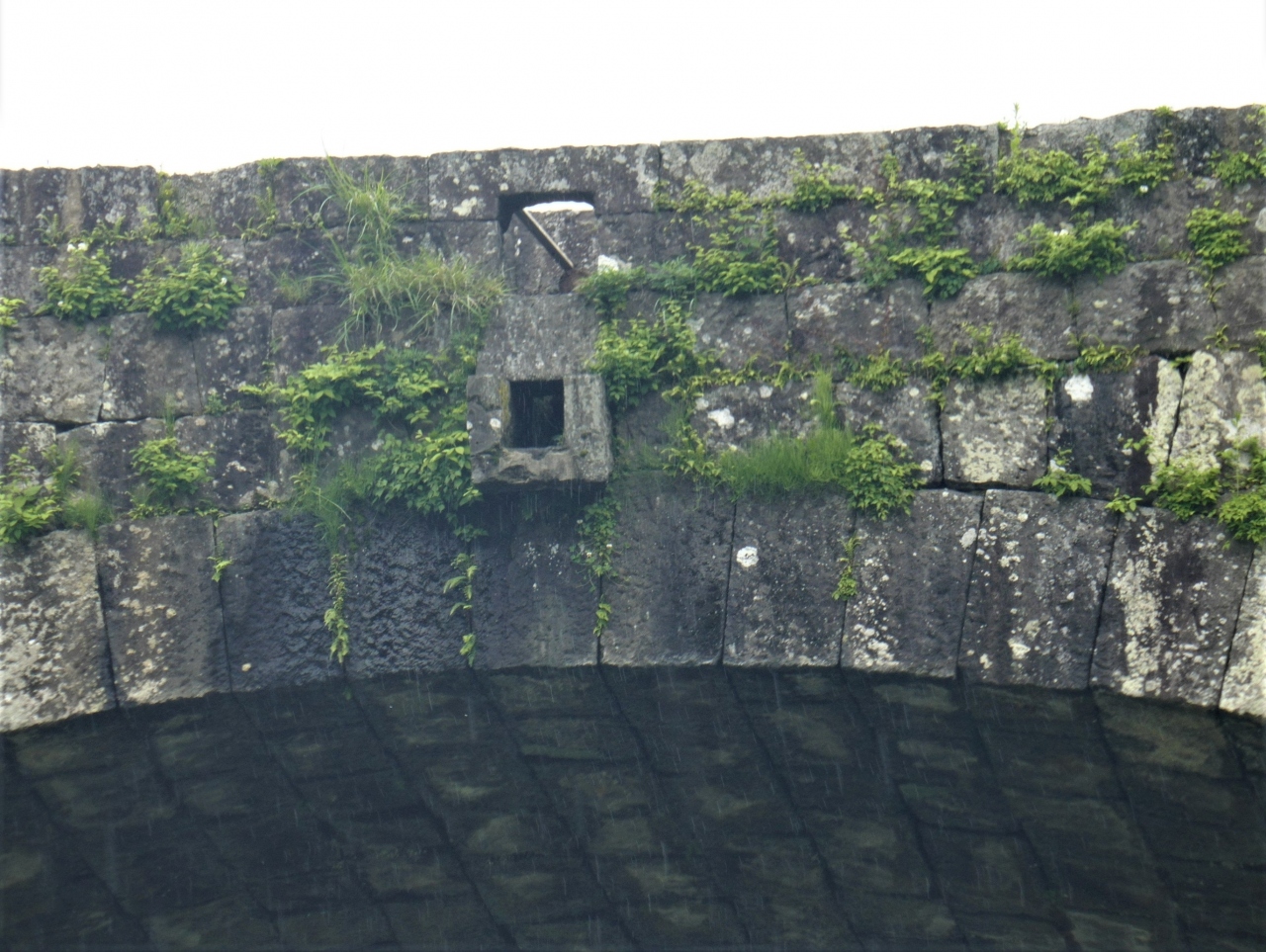 江戸時代末期に造られた石造のアーチ橋は復旧工事のため立ち入り禁止になっています