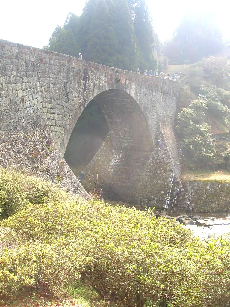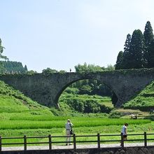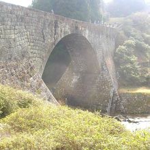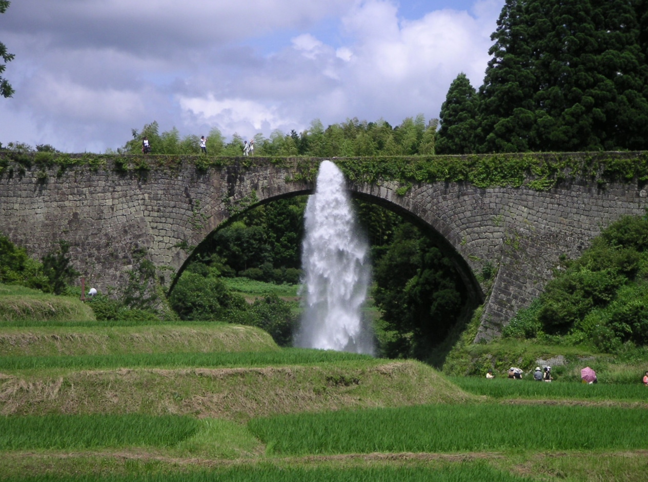 嘉永7年(1854年)、水不足に悩む白糸台地に水を送るため、矢部の惣庄屋布田保之助が全力を傾けて造った日本最大級の石造アーチ水路橋である。種山石工の技術を結集したこの橋は、高さ約20m、橋上の幅6,3m、アーチの水路28,18mで中央には飲用と潅漑用の3本の水道が通っている。水道は一方の高い所に取水口を設け、平坦な橋を通り、その勢いで対岸の高い所に水を吹き上げる逆サイホンの原理を応用、一昼夜で15,000立方mの水を送り、100haの水田を潤す力を備えている。水圧や地震に充分耐え得るような鞘石垣や鎖石の工法を用いた高度な技術力と、均整のとれた美しさが高く評価され、昭和35年には国の重要文化財に指定された。