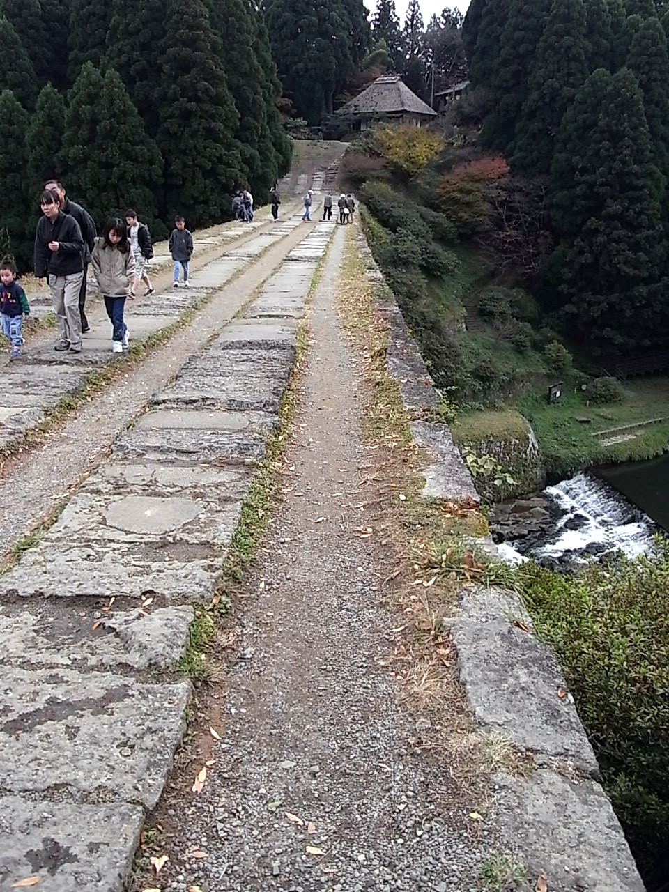 橋の上は、石と石の間に短い草が生えていましたが、大きな凸凹はなく、歩きやすかったです。