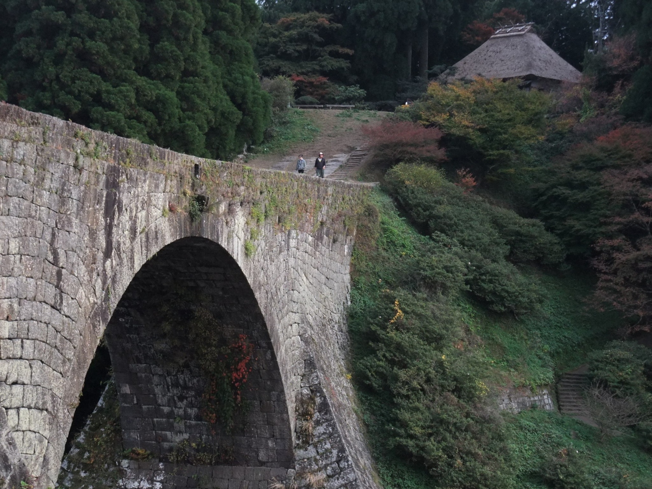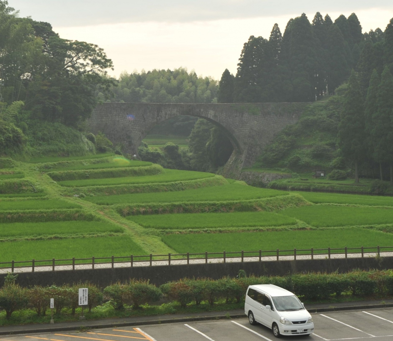 今年国宝になったという事で、高千穂から山鹿温泉に行く道中に寄ってみる事にしましたが、ナビで案内された駐車場から通潤橋が見え... 続きを読むる場所まで行くのはかなりのアップダウンのある道を通って行かなくてはならず、暑い夏場に行くには不適当な場所だと思った。また案内板がほとんど無く本当に着くのかどうか不安なまま歩く事になった。途中、60m級の立派な滝があるが、そこからまだまだ歩かねばならない。やっとこさ橋が見える所に到着したかと思えば、橋の向こうに見える道の駅通潤からの方が美しく見えるばかりでなく、車で行けるので疲れる事もない。現地駐車場でこういう告知をちゃんとして欲しいと思った。 あと、水を放流する際には事前予約で橋の上から眺める事が出来るらしく、我々が着いた駐車場は橋の上に行く為のものであること。通常は道の駅から眺めるので充分なのに時間と体力を無駄にした気がして残念でした。 閉じる