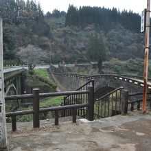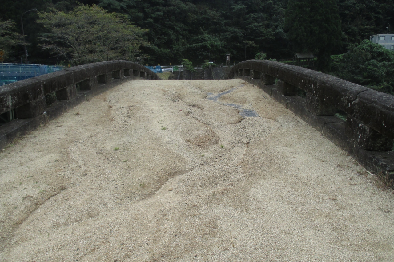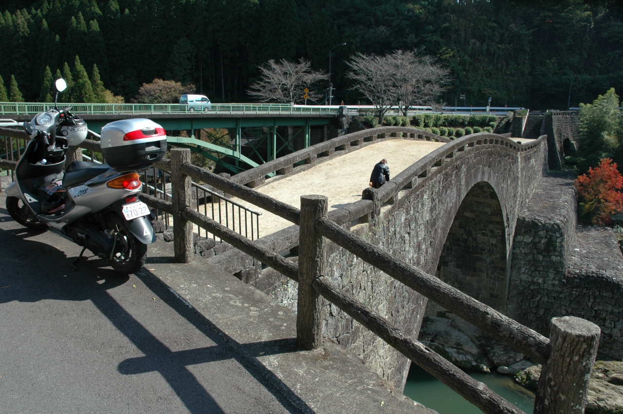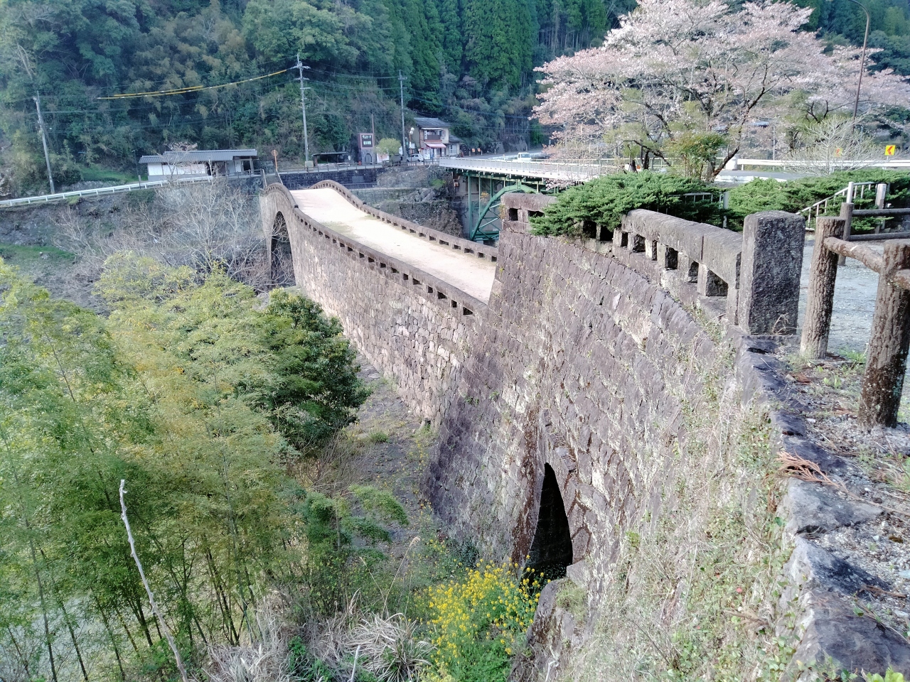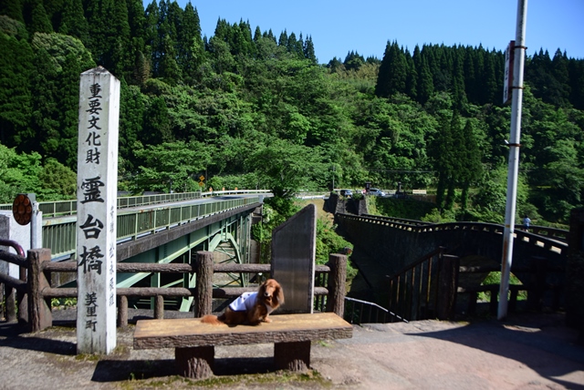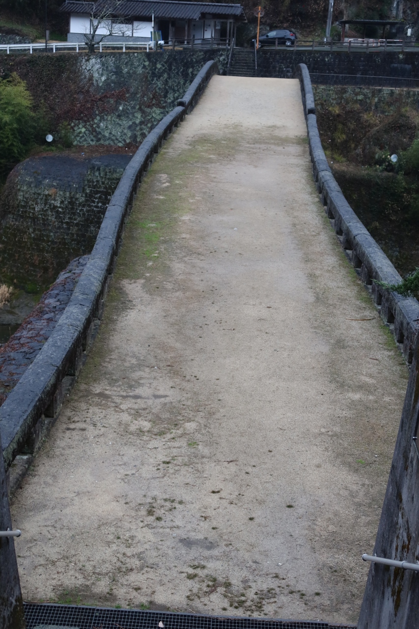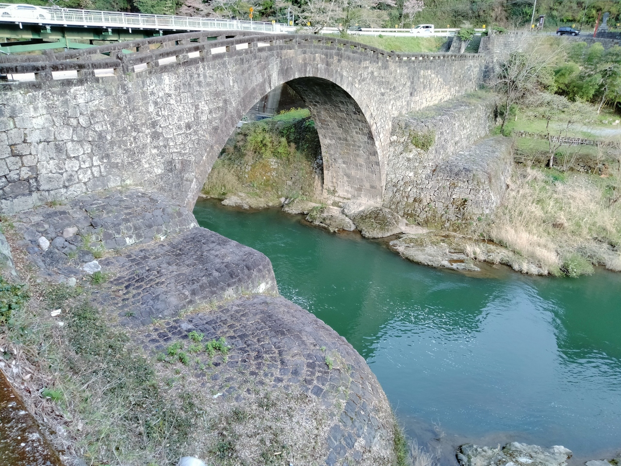 霊台橋は、美里町の清水というところにありました。格段に大きな橋!が第一印象です。架かっている川が緑川で、ほかの石橋の架かっ... 続きを読むている釈迦院川などとは比較出来ないほど大きな川でした。今はちょっと上流に船津ダムがありますが、江戸時代は遥かに大きな流れだったのでしょうね。築いたのは種山村の石工・卯助を頭領とし、地域一丸となって取り組んだそうです。緑川の水量の少ない冬期を工期の中心に置き、1846年(弘化3年)に起工して、翌1847年(弘化4年)に竣工と、わずか7ヶ月で完成させたそうです。霊台橋の名前は中国古典の難工事を短期間で成した文王霊台建造の様だと名付けられたそうです。橋の長さは約90m、幅は約5.5m、高さは約16mです。