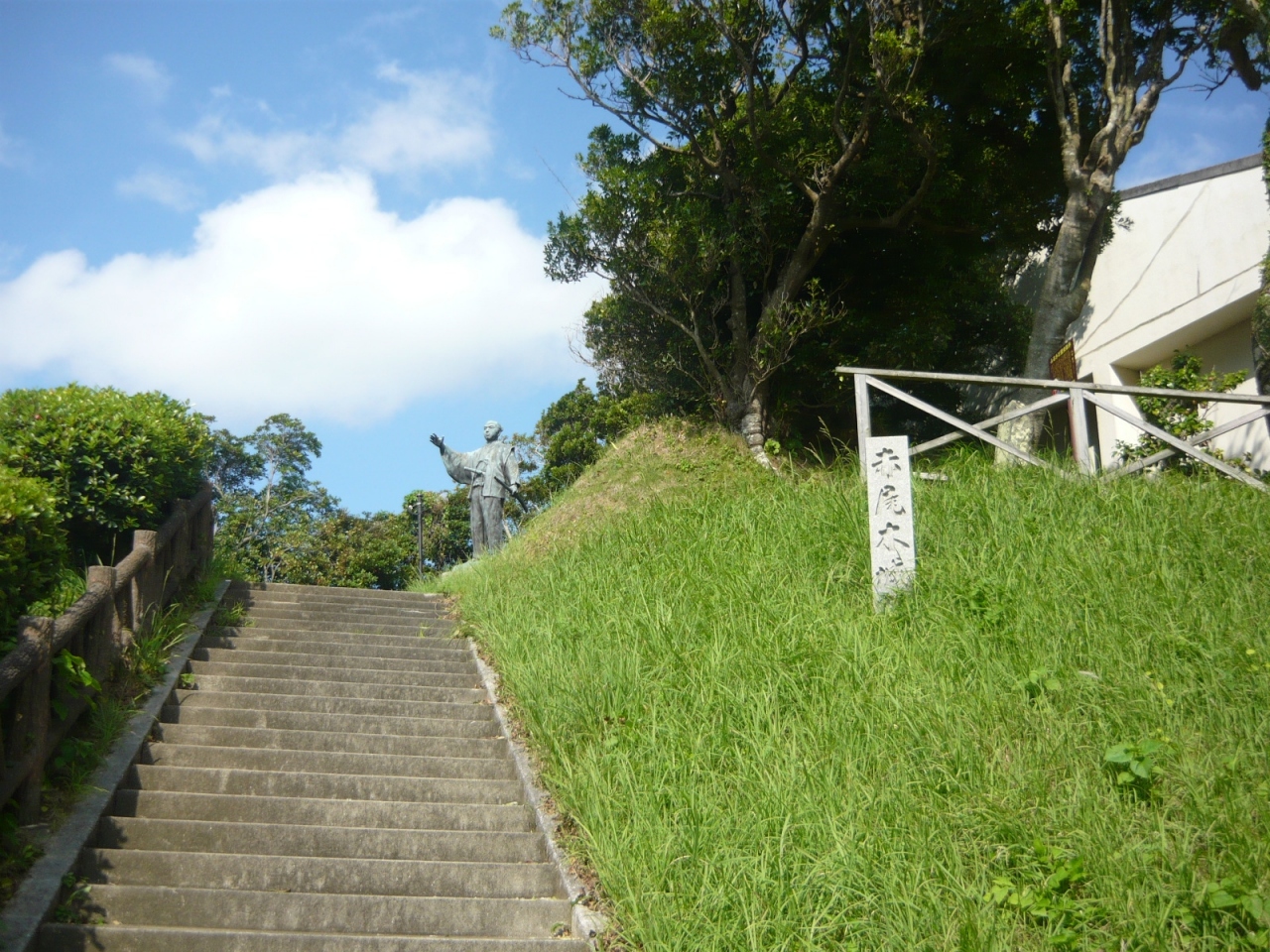 鉄砲館の道路を隔てた小高い丘の上に種子島氏第14代島主で、1543年漂着したポルトガル人から鉄砲2挺を購入し、その操法と製法を家臣に研究させた“種子島時尭”の像があり、その近くにも赤尾木城跡を示す石標が立っており、付近一帯が赤尾木城だったと思われます。 閉じる投稿日:2020/10/26