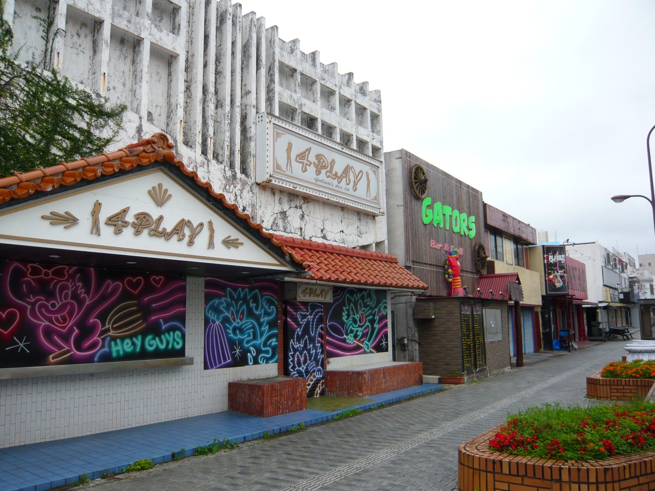 夜になるとバー、クラブ(もちろん踊る方)、gentleman's club(ハリウッド映画でよく見るポールダンスのあるストリップ)がほとんどです。週末になると米兵でにぎわいます。日本人が一人でウロウロすると男でもちょっと怖いです。