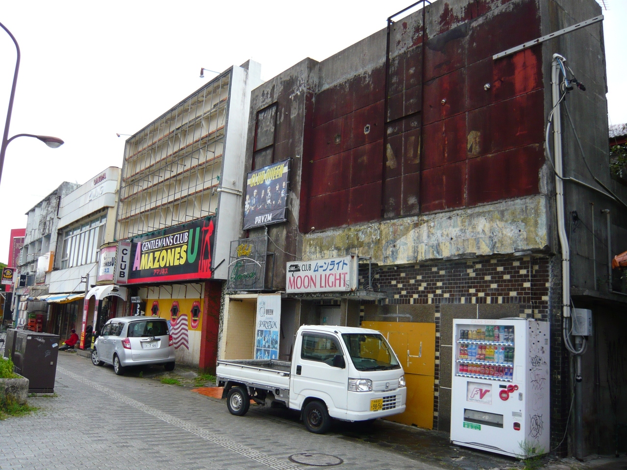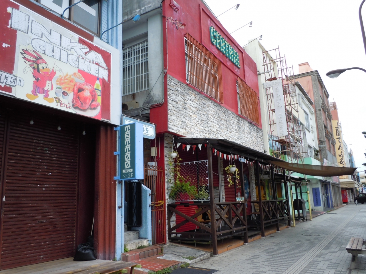 昼間営業している店舗は、床屋(アメリカ人、特に黒人向け)、薬店(日本人向け)、洋品店(インド人が経営。アメリカ人向け)、土産物屋(怪しいアジアンチックな品が多い)、パン屋(美味しいです)、てんぷら屋(あくまでも沖縄のてんぷら)、ソーセージ屋(ドイツ仕込みだとか)といったところでしょうか。