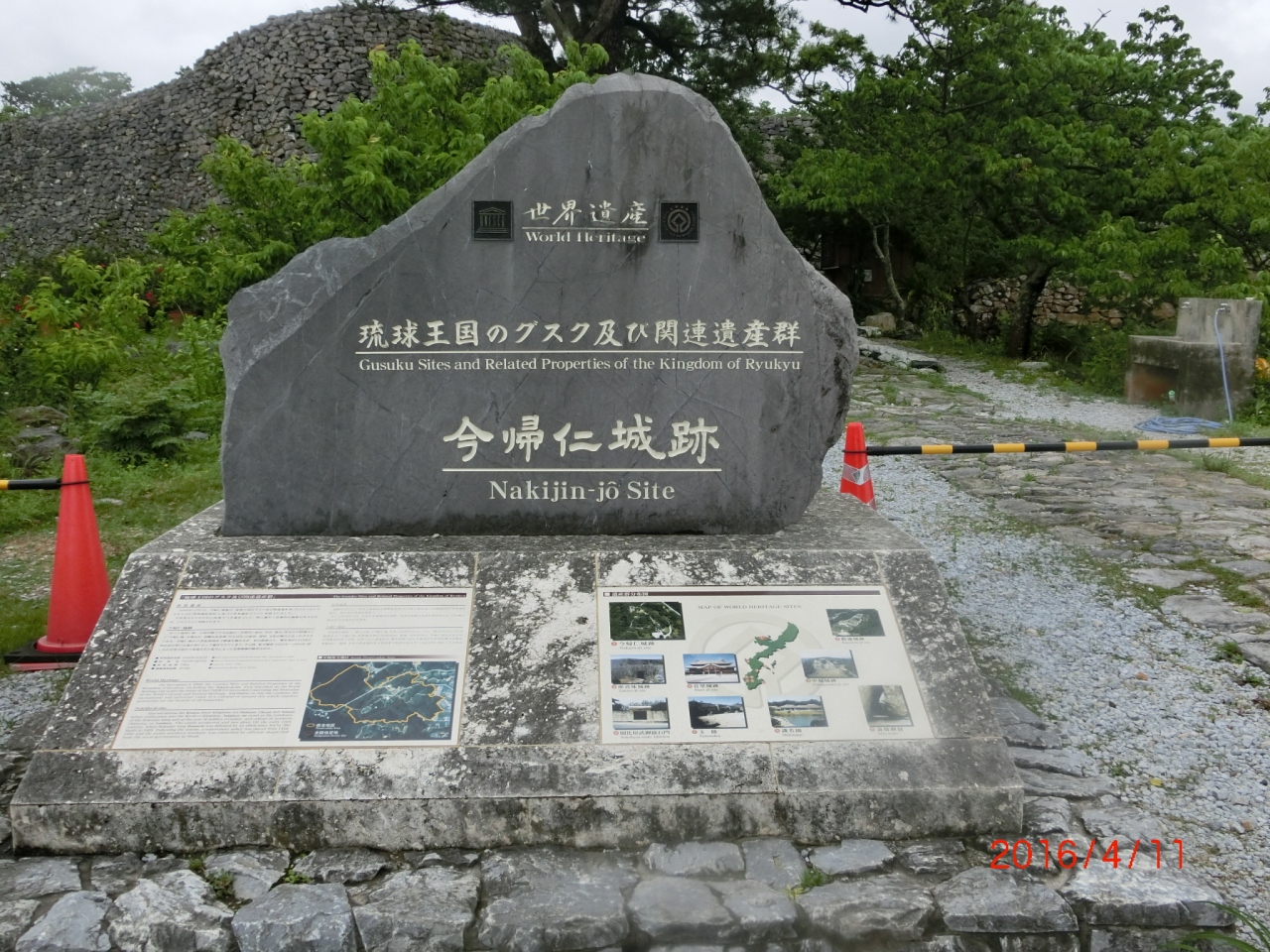 沖縄戦を経験したものの被害は少なく、築城時の遺構等がかなり良い状態で残っているのが特徴です。また面積37,000mを抱えるグスク跡は沖縄県内最大級の規模であり、平成12(2000)年には2首里城跡などとともに、琉球王国のグスク及び関連遺産群としてユネスコの世界遺産に今帰仁城跡という名称でに登録されました。
