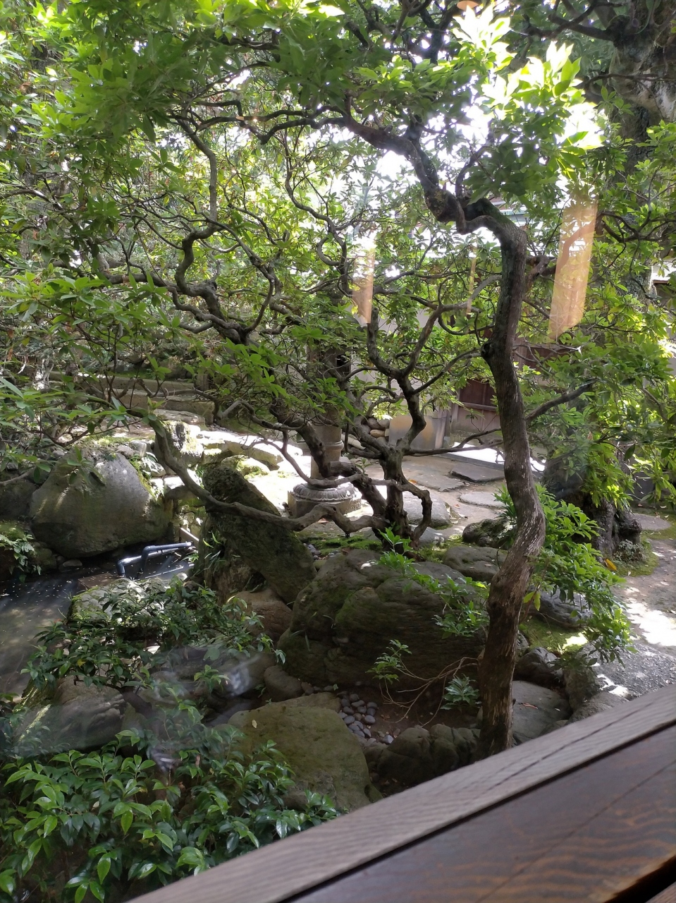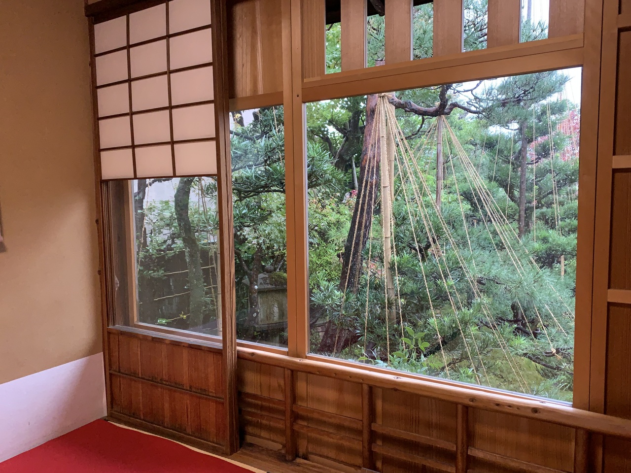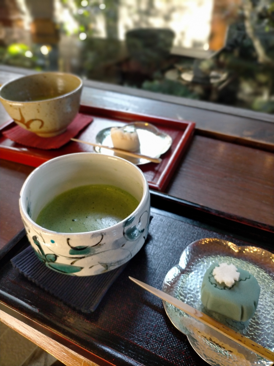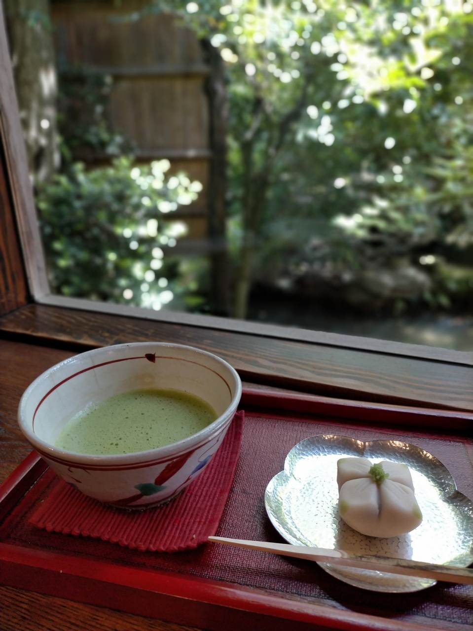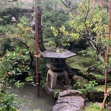 和菓子屋のカフェから庭の一部を見ることができます