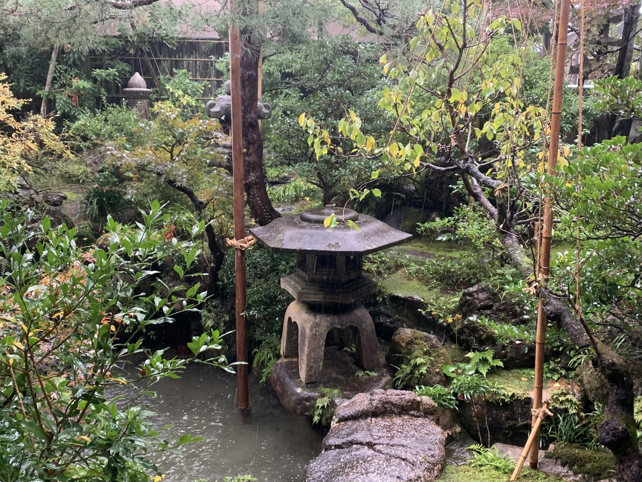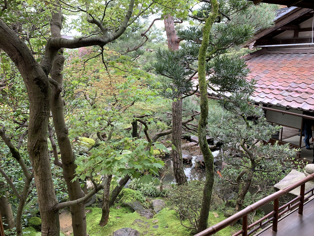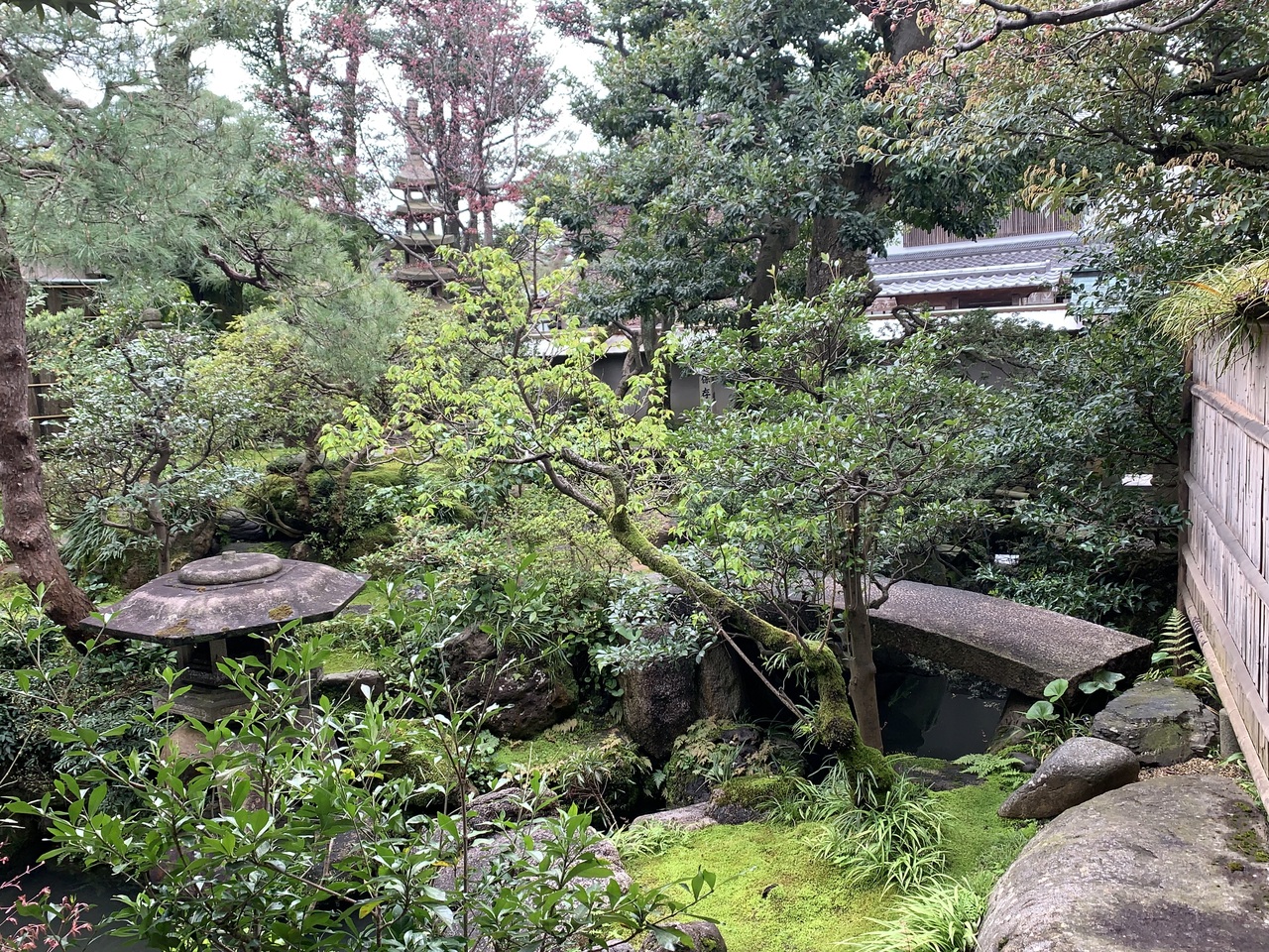 和菓子屋のカフェから庭の一部を見ることができます