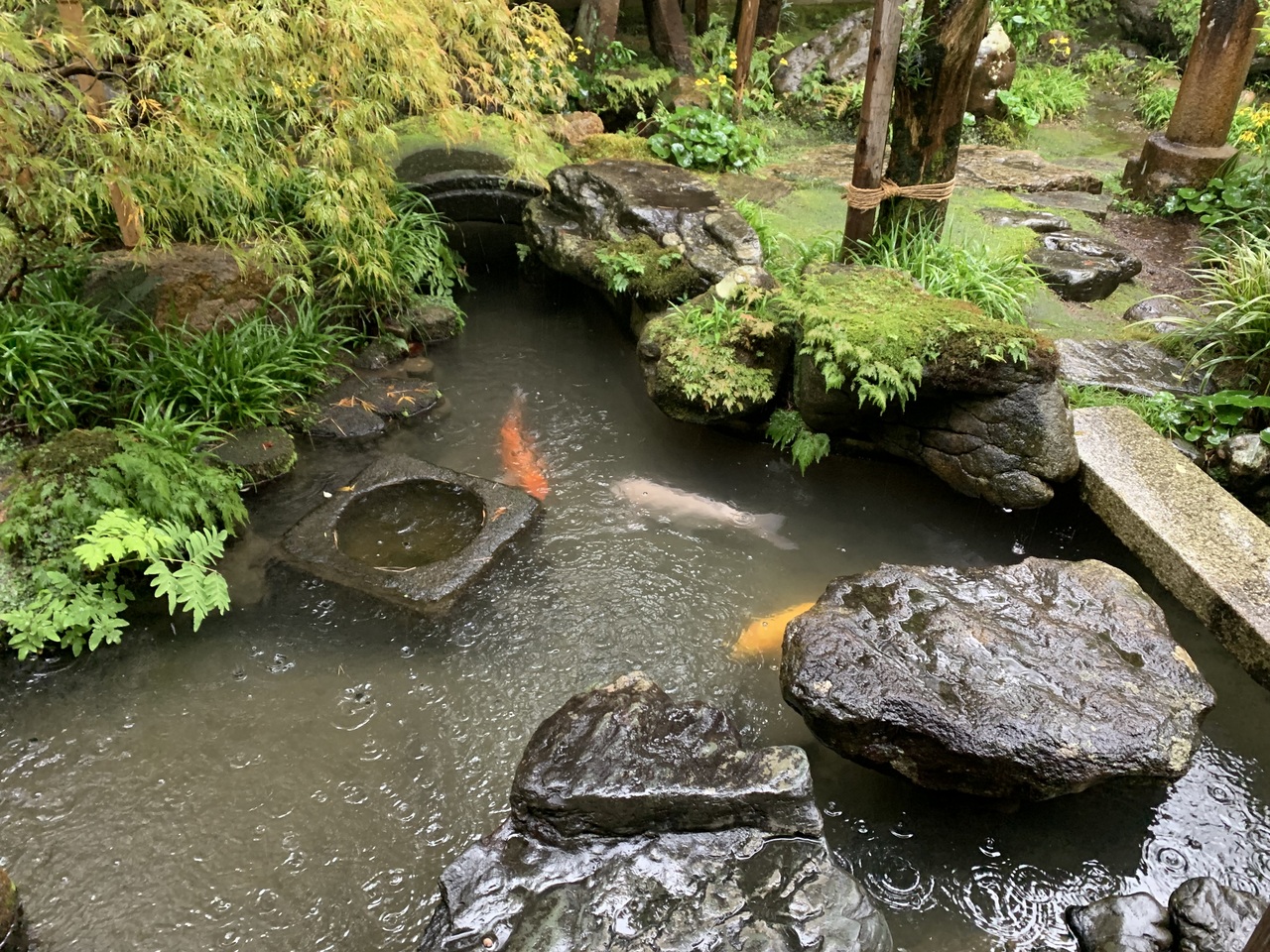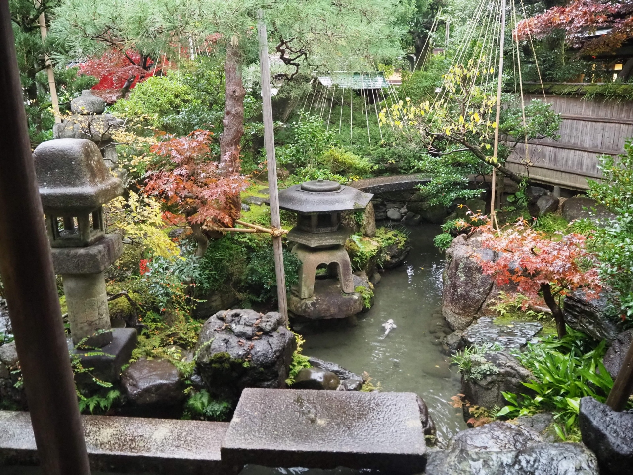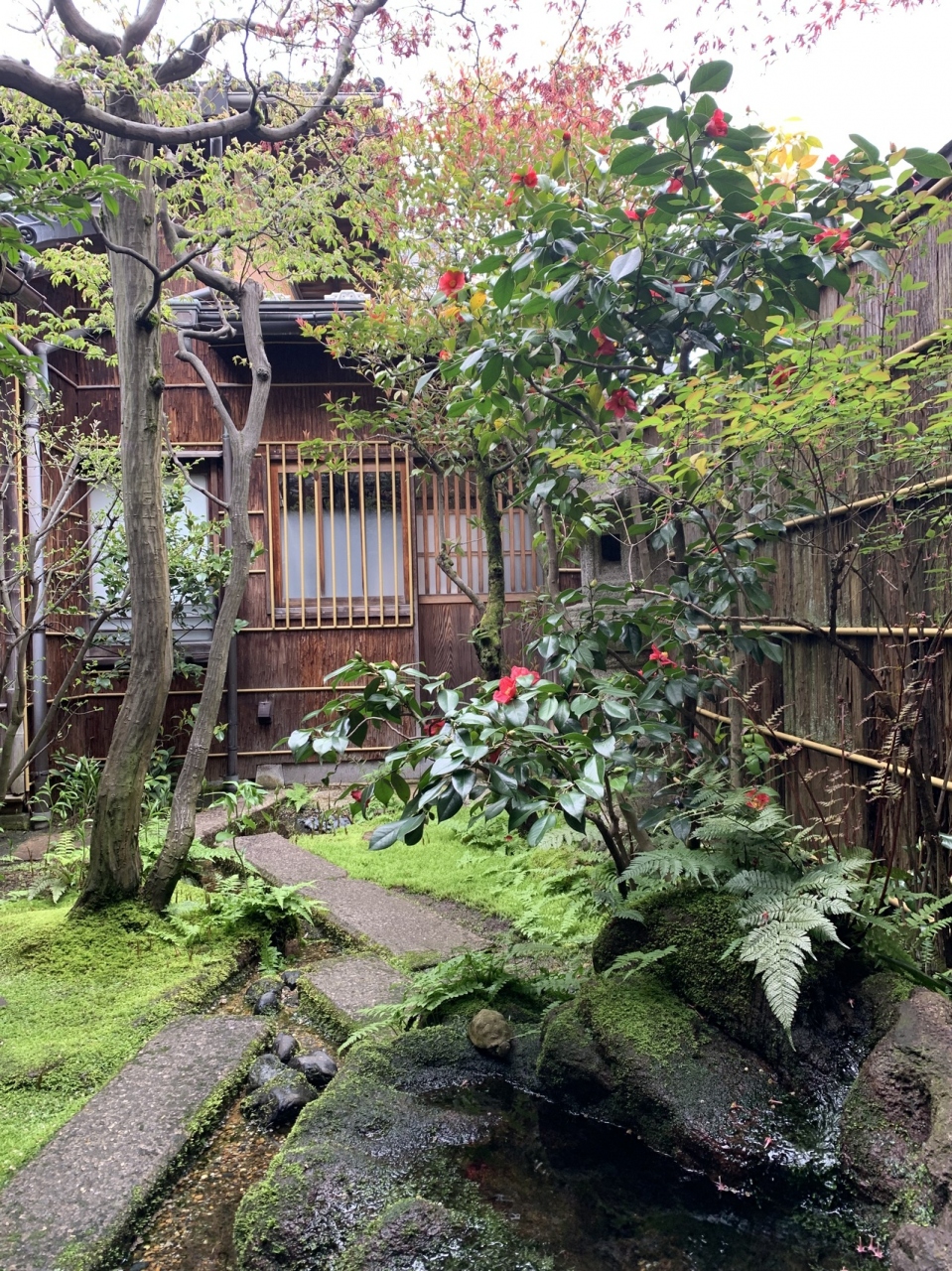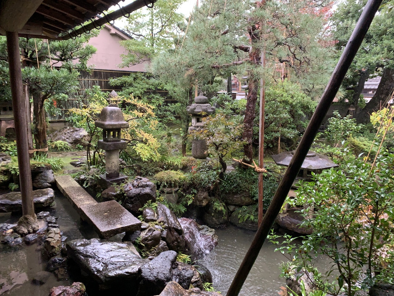 和菓子屋のカフェから庭の一部を見ることができます