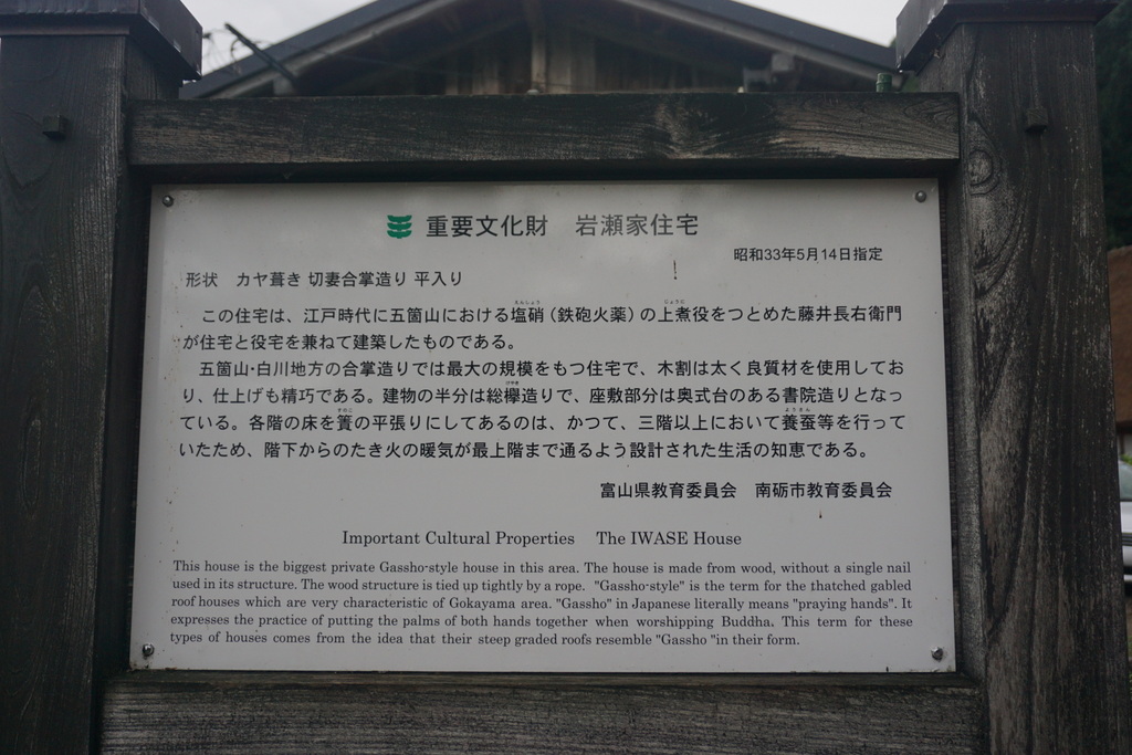 岩瀬家は五層建てでその大きさはこの五箇山の合掌造りで最大を誇ります。