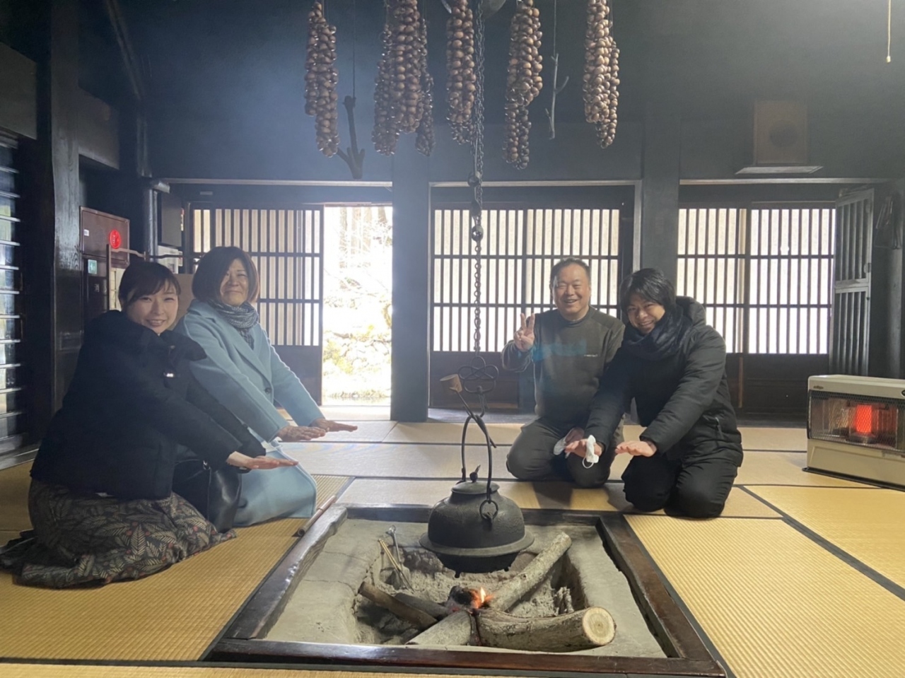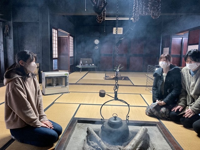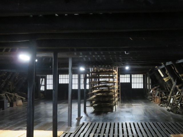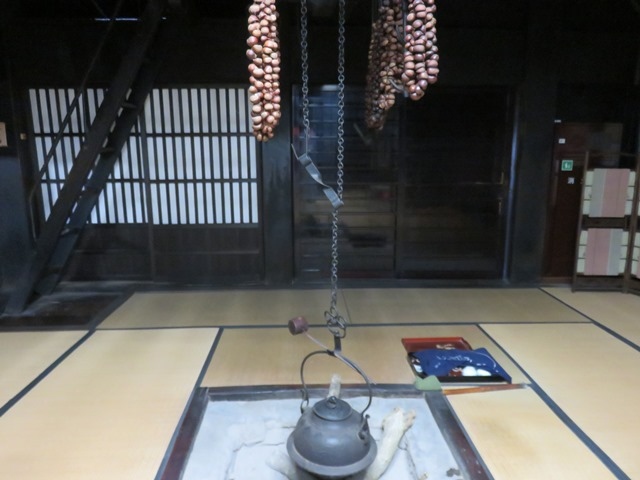 屋内では囲炉裏に火が入っていましたが、この囲炉裏を一年中焚くのは白川郷もそうでしたがこの煙が木の強度を上げ、家の寿命を延ばすため。