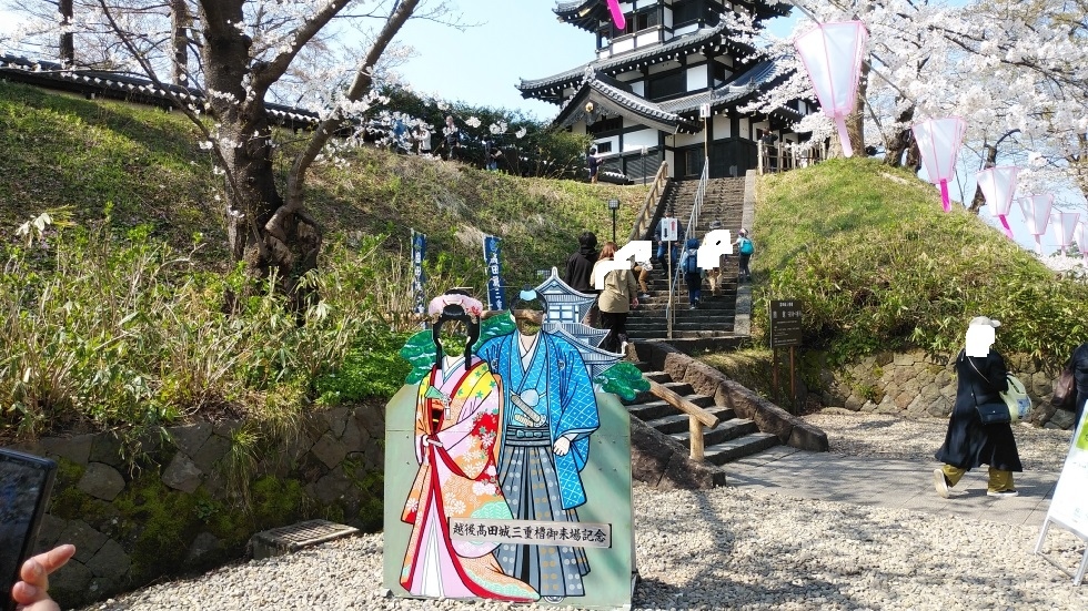 規模としては弘前城天守閣と同等ありますが此方は櫓です。高田藩初代藩主は徳川家康の6男松平忠輝。越前に配された家康の次男結城... 続きを読む秀康と共に前田家有事の際には前田家を挟撃する為高田に配されました。しかし忠輝は義父伊達政宗の影響もあってか、対外交易に関心を持ち、鎖国へ向かう幕府の方向性に反した事から忠輝は改易。忠輝の改易に伴うゴタゴタから国造りは滞り、この為、天下普請で始められた城造りも天守閣造営迄至りませんでした。その後前田家と徳川家の縁戚が進むと、前田家牽制と言う大義名分も失った高田藩は雪深い地と言う事も加わり、譜代、親藩大名の左遷先と言う不名誉な位置づけになりました。そんな高田城ですが、今日では、上野恩賜公園、弘前城と並び、日本三大夜桜の地として有名になりました。松平忠輝もあの世で喜んでいるのではないでしょうか? 閉じる