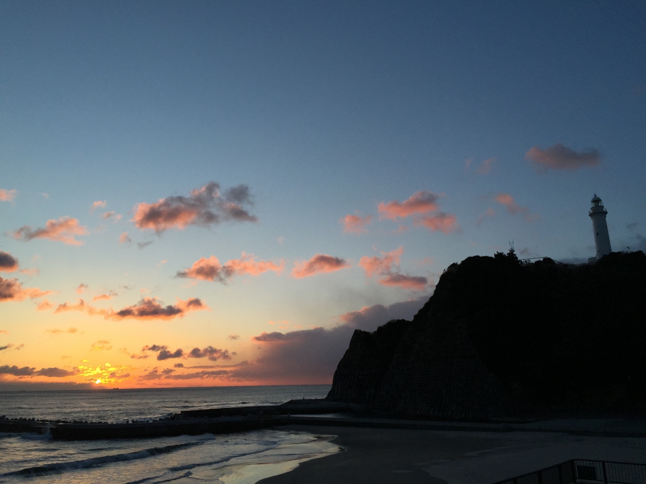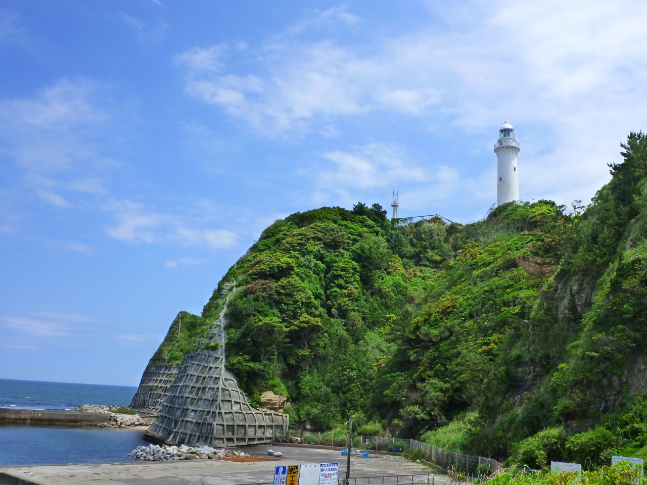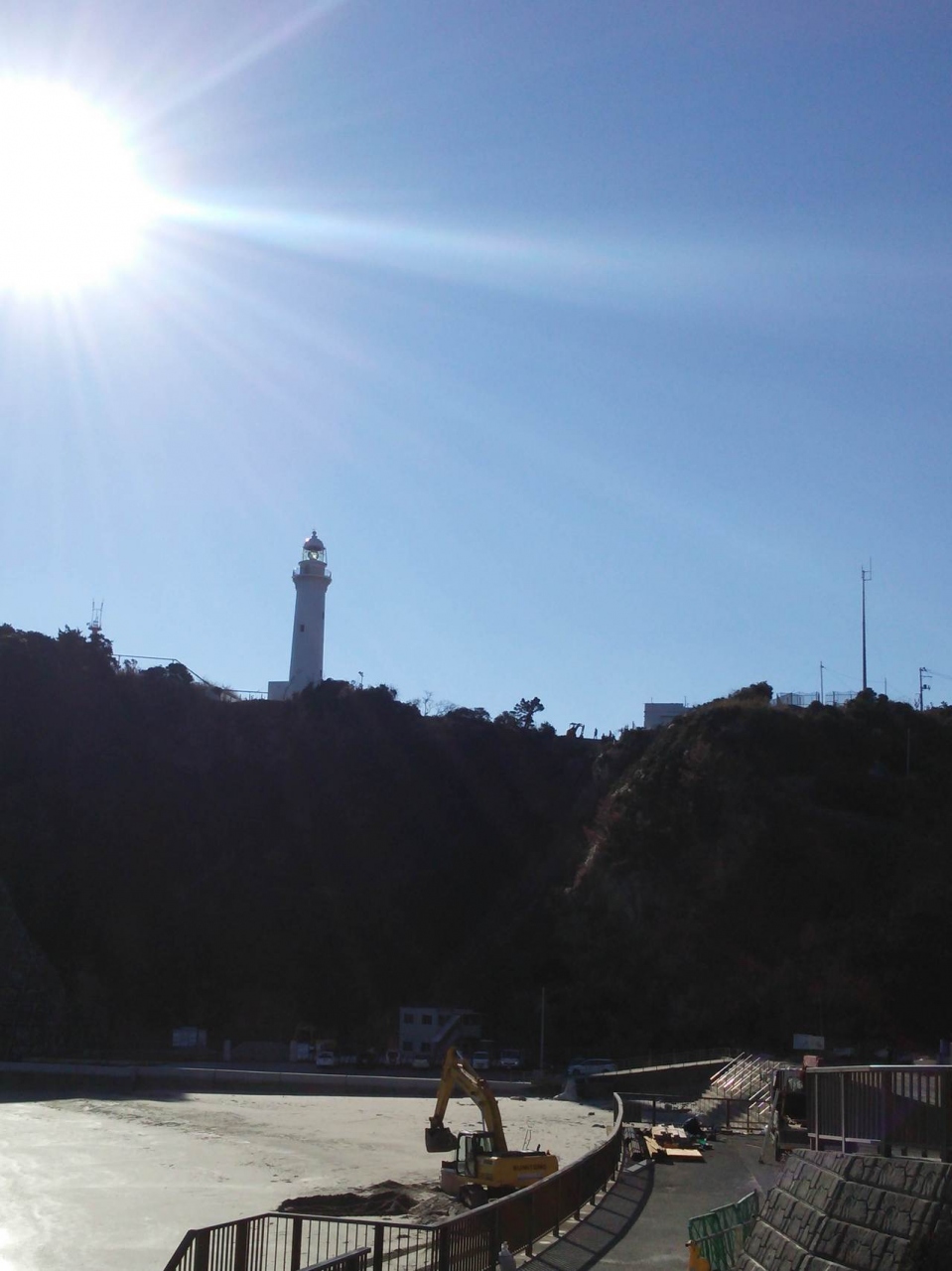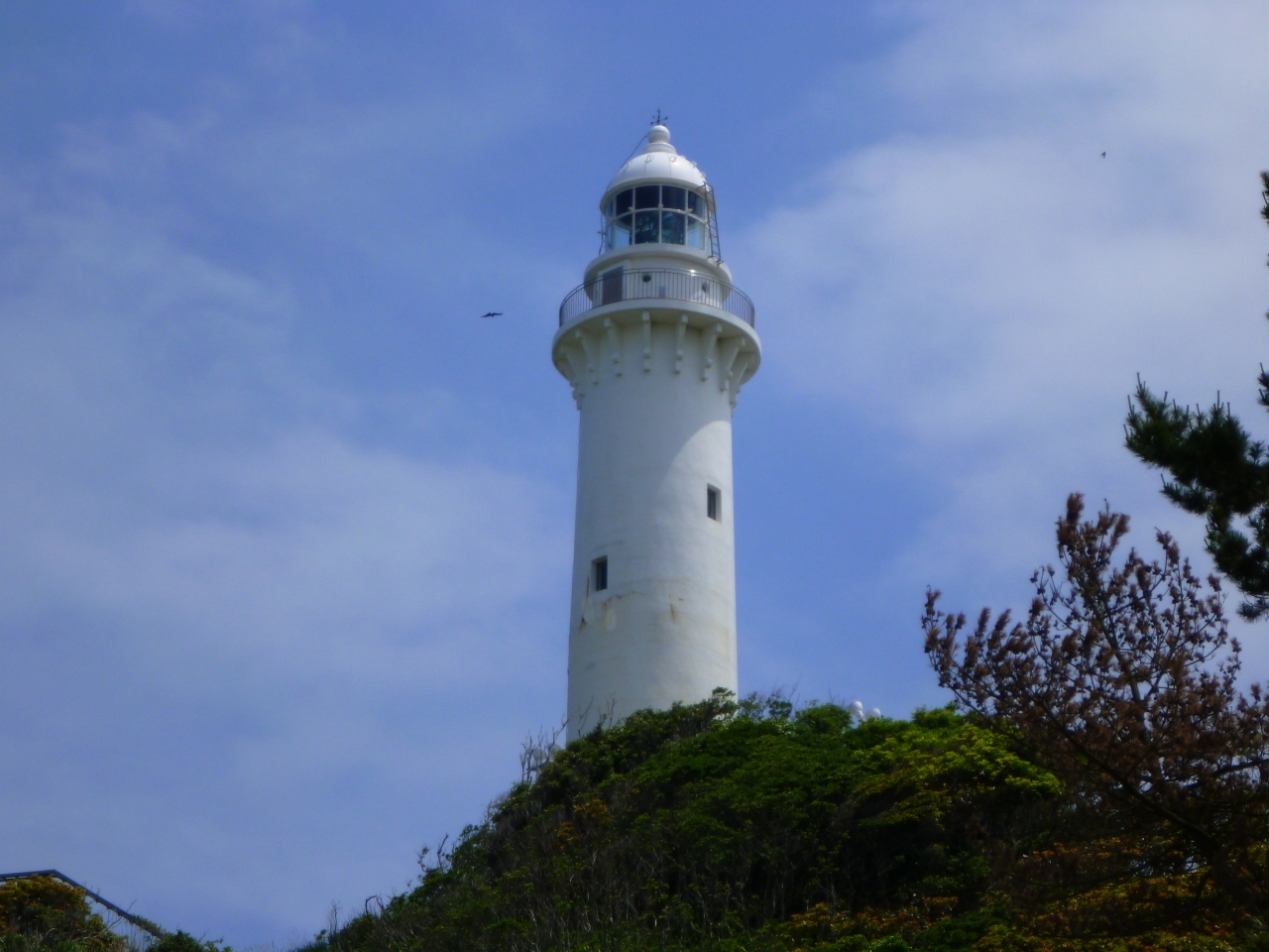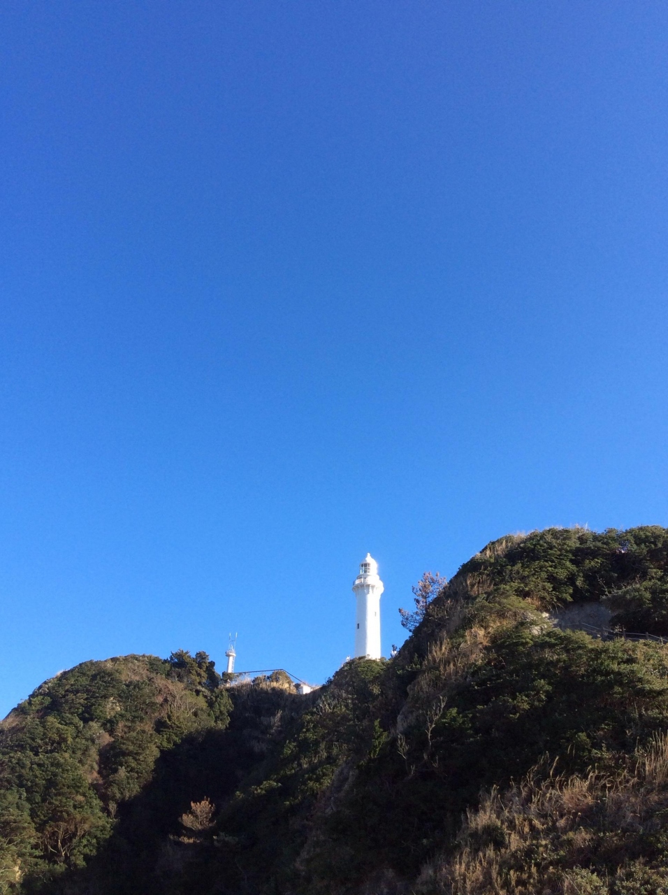 灯台のてっぺんの展望台に上がってみてください。水平線が丸くな