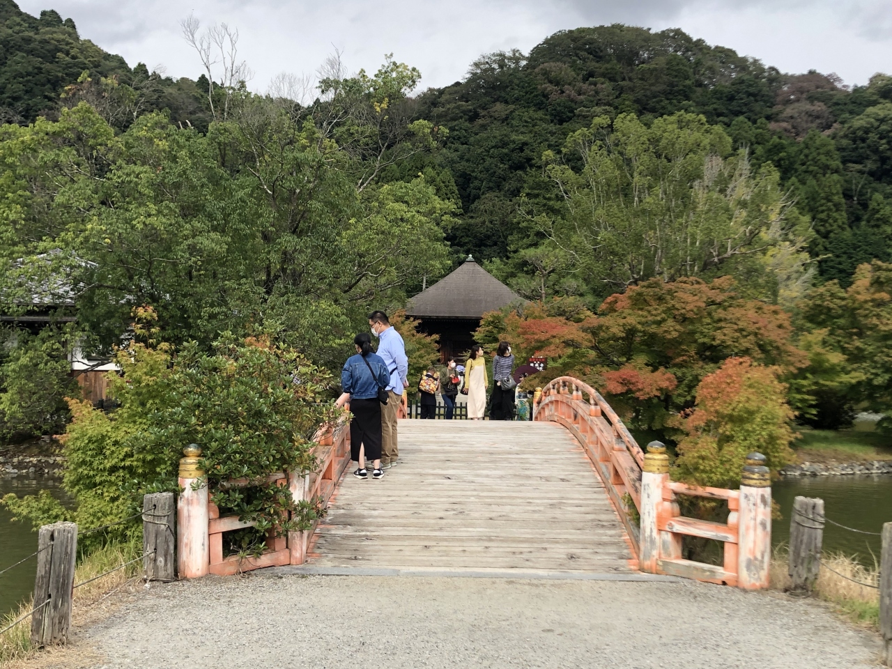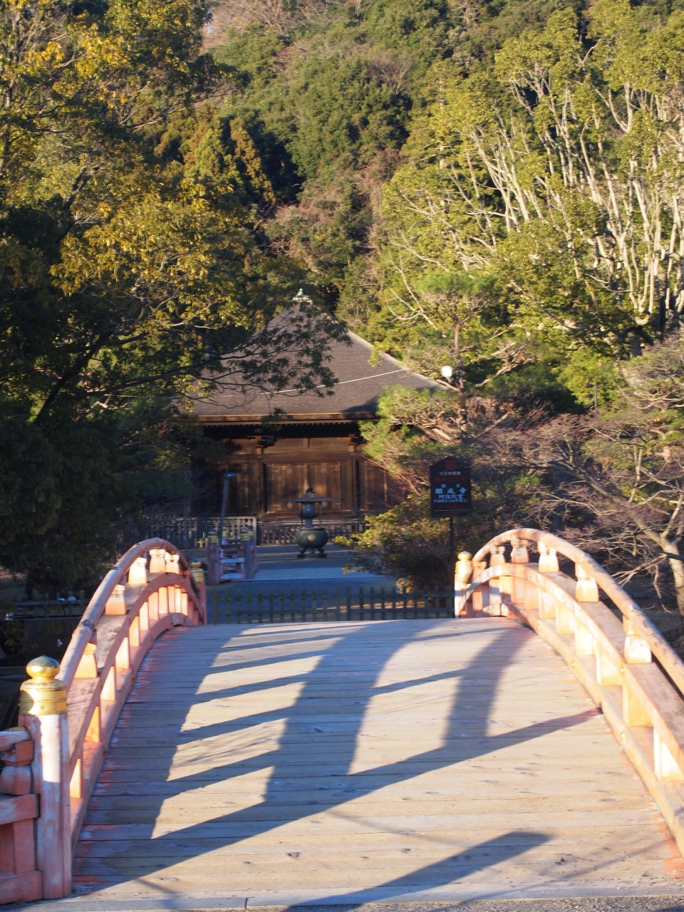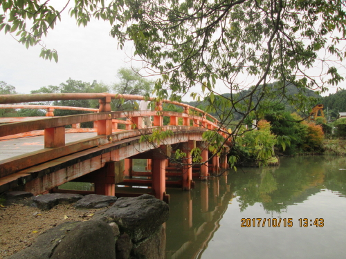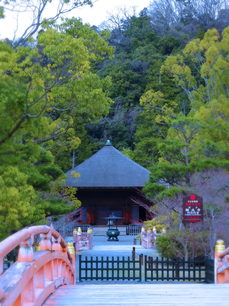 常磐自動車道いわき湯本ICから車で約15分の距離だが、天心記念五浦美術館が月曜日休館だった事が分かって、13:15に勿来の関跡を発ち、国道を走って紅葉で知られた白水阿弥陀堂まで行った。案内表示も分かりやすく、朱塗りの橋を渡ると直ぐに大きな駐車場があった。14:05に到着。ナビはこの点便利だ。