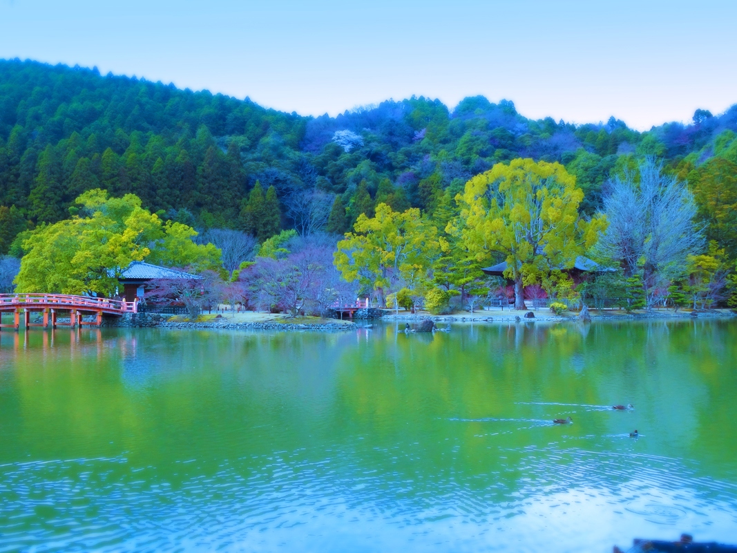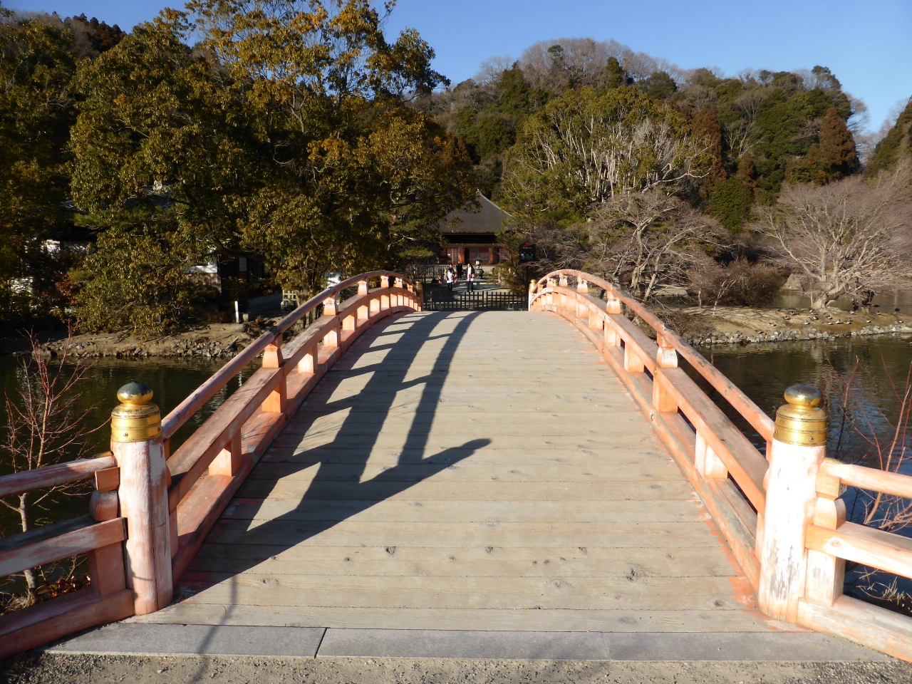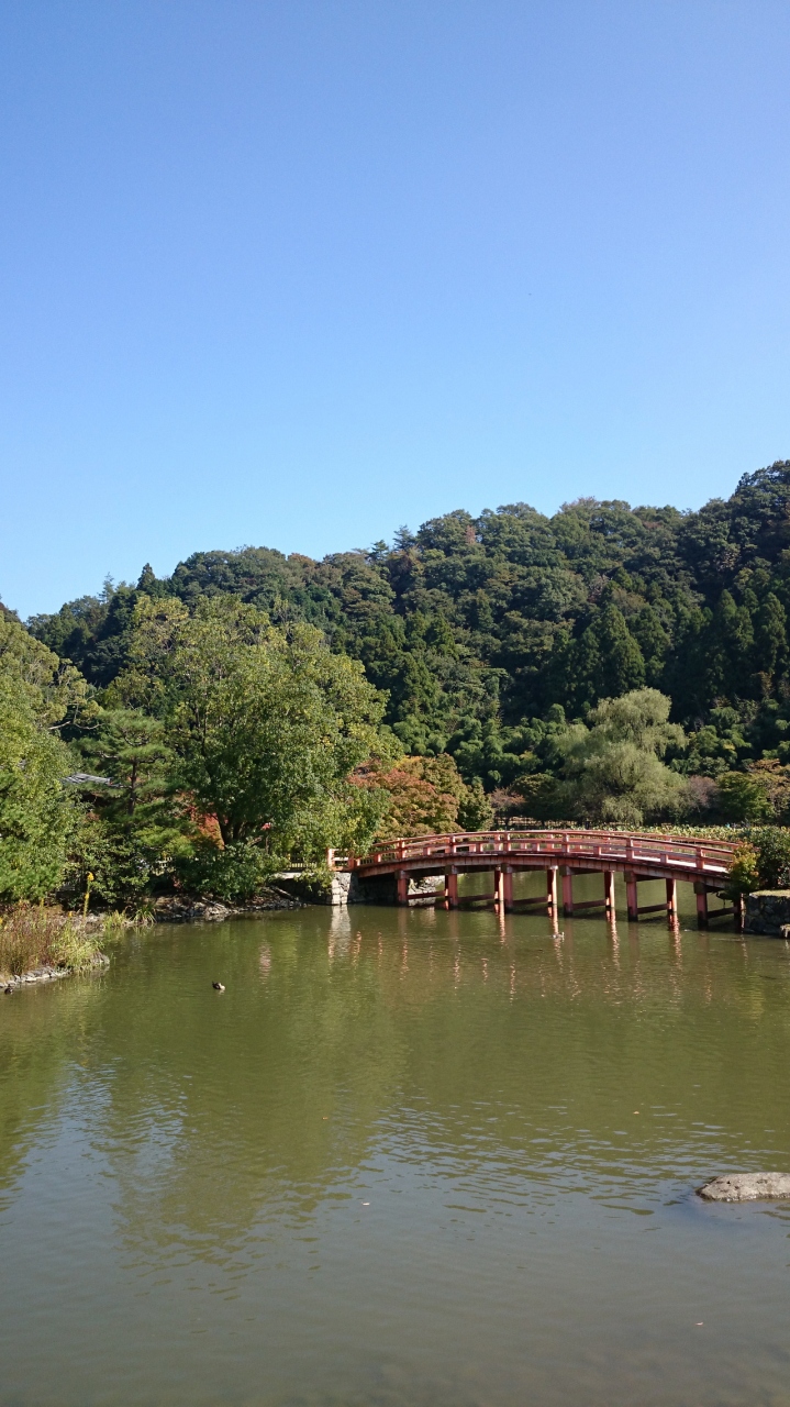 常磐自動車道いわき湯本ICから車で約15分の距離だが、天心記念五浦美術館が月曜日休館だった事が分かって、13:15に勿来の関跡を発ち、国道を走って紅葉で知られた白水阿弥陀堂まで行った。案内表示も分かりやすく、朱塗りの橋を渡ると直ぐに大きな駐車場があった。14:05に到着。ナビはこの点便利だ。