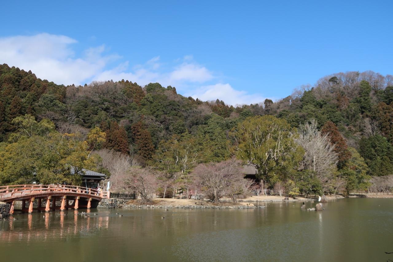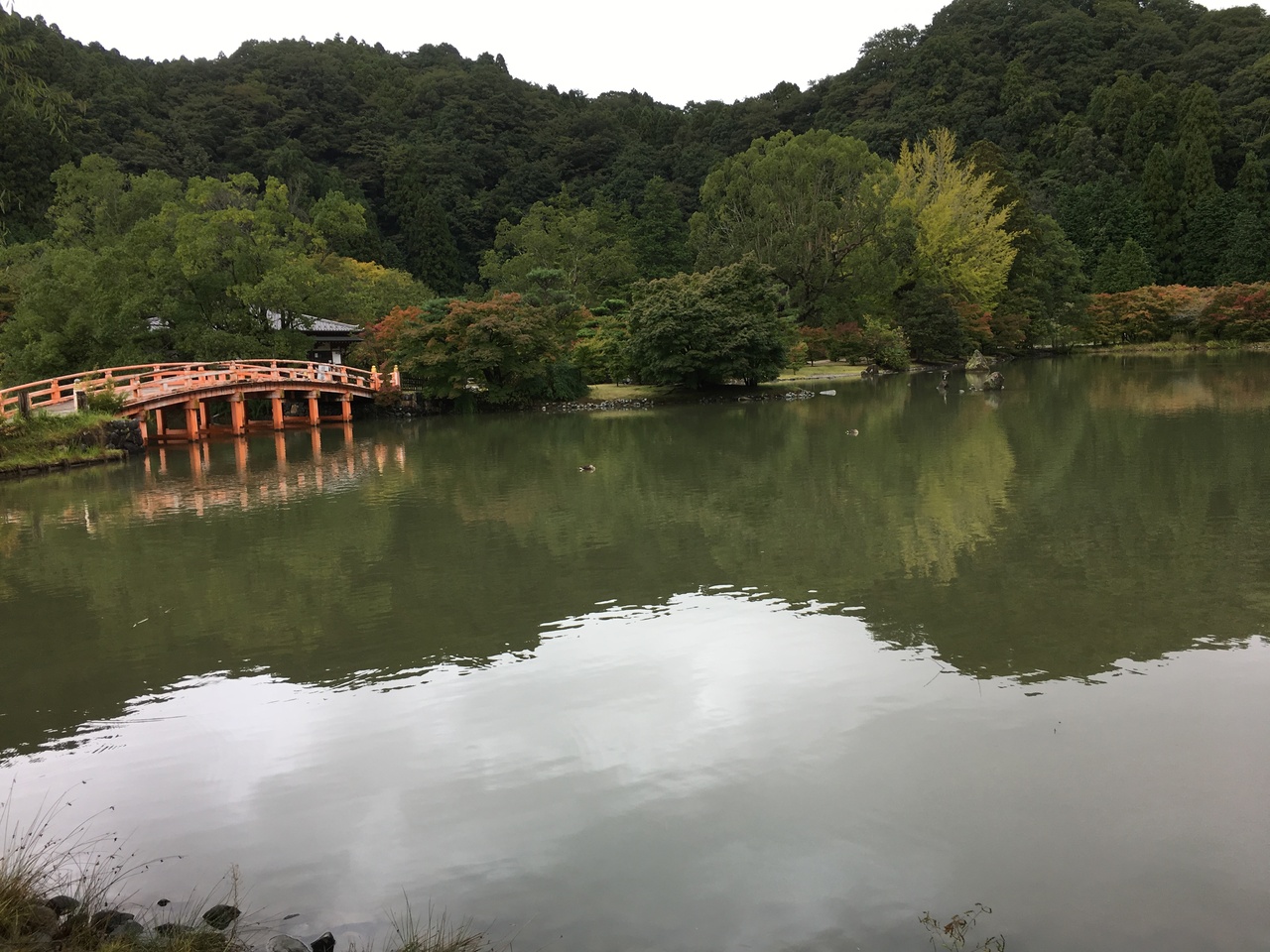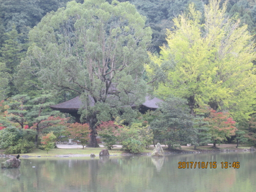 待ち時間を利用し、鯉が泳ぎ、カモや白サギもいた大きな池を眺め、境内の大銀杏などを見て回った。今年の紅葉はまだ1週間ほど早かったようだ。