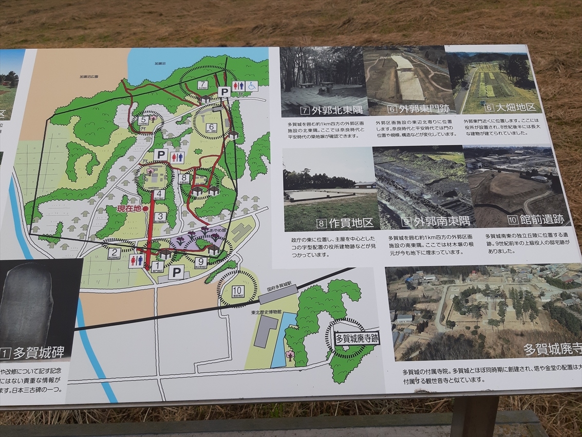 最寄り駅はJR東北本線(JR仙石東北ライン)の国府多賀城駅で、多賀城跡敷地南端にある多賀城碑(壷碑)までは10分ほど。