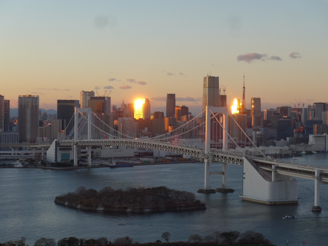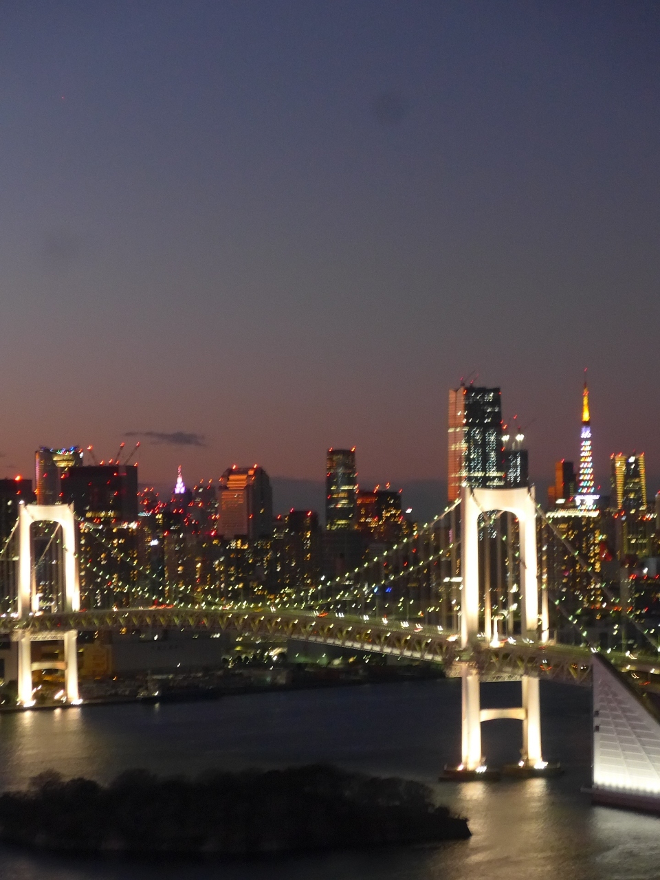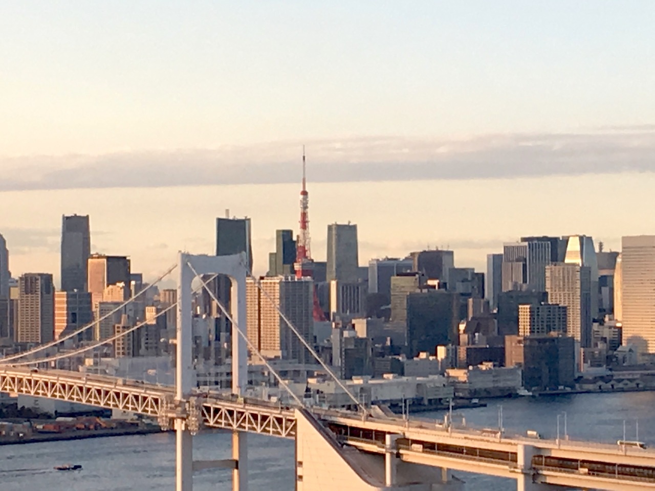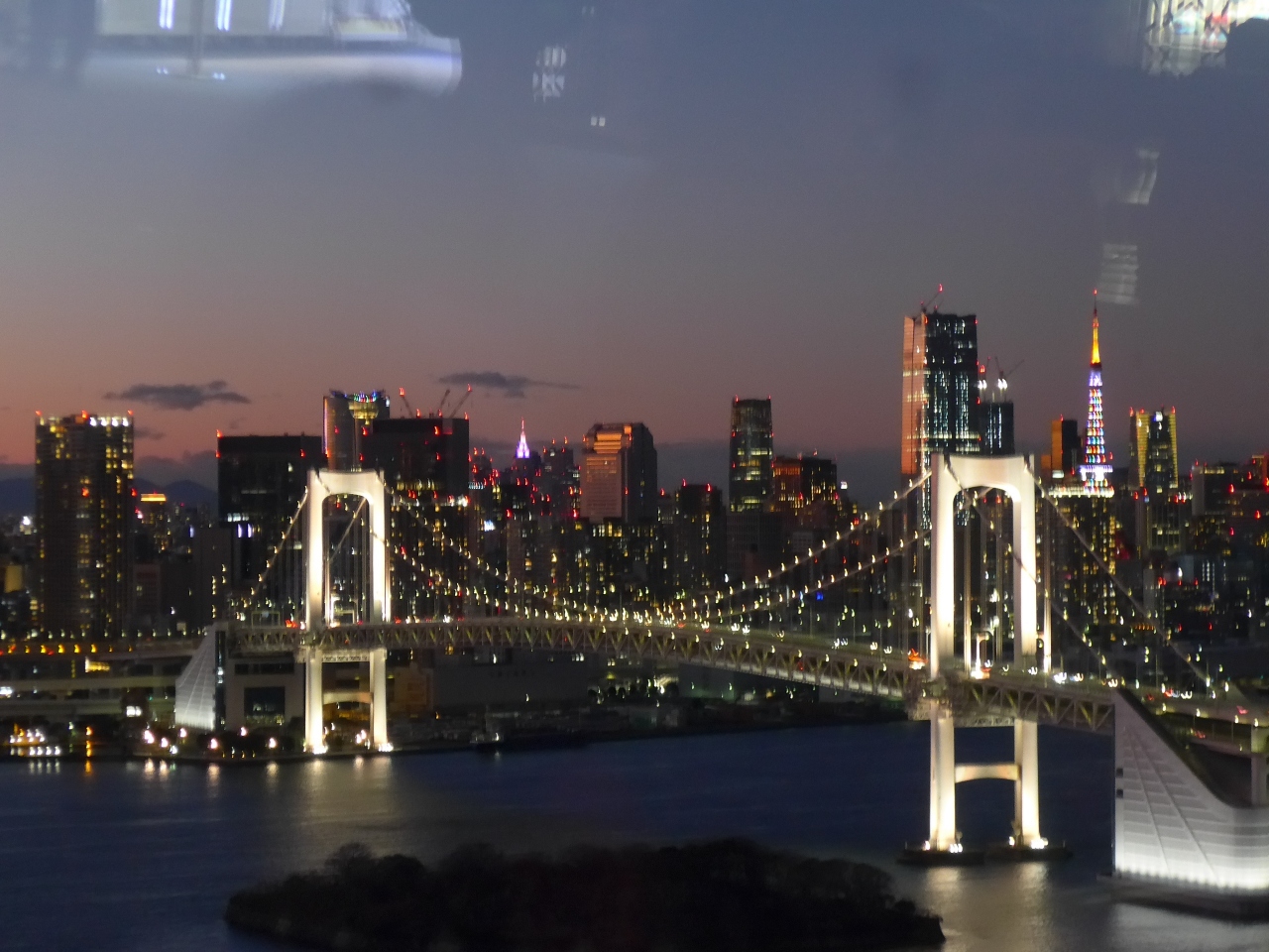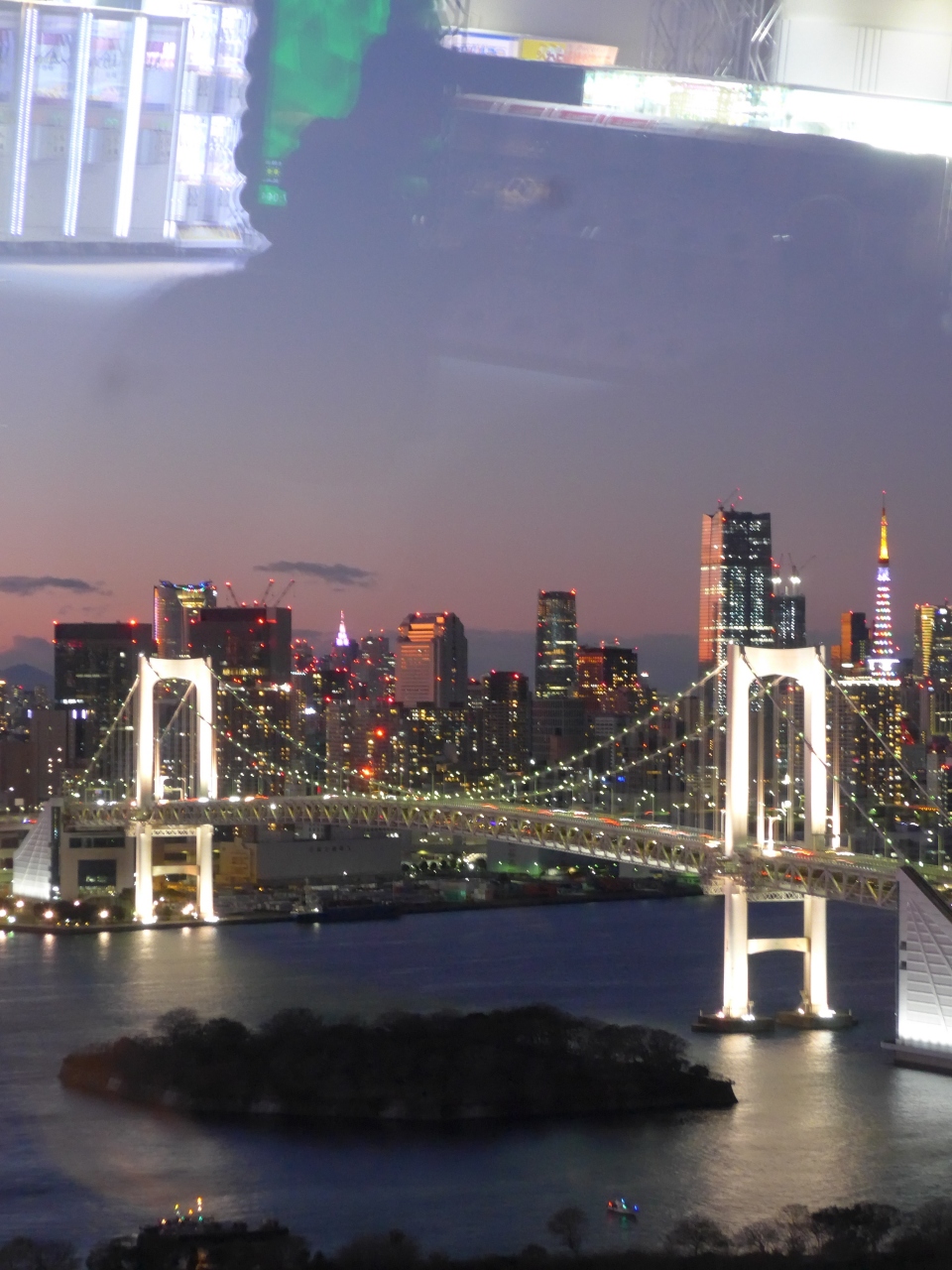 日が暮れると夜景がとても綺麗で中でもライトアップされた東京タワーとレインボーブリッジは多くの観光客が撮影していました。