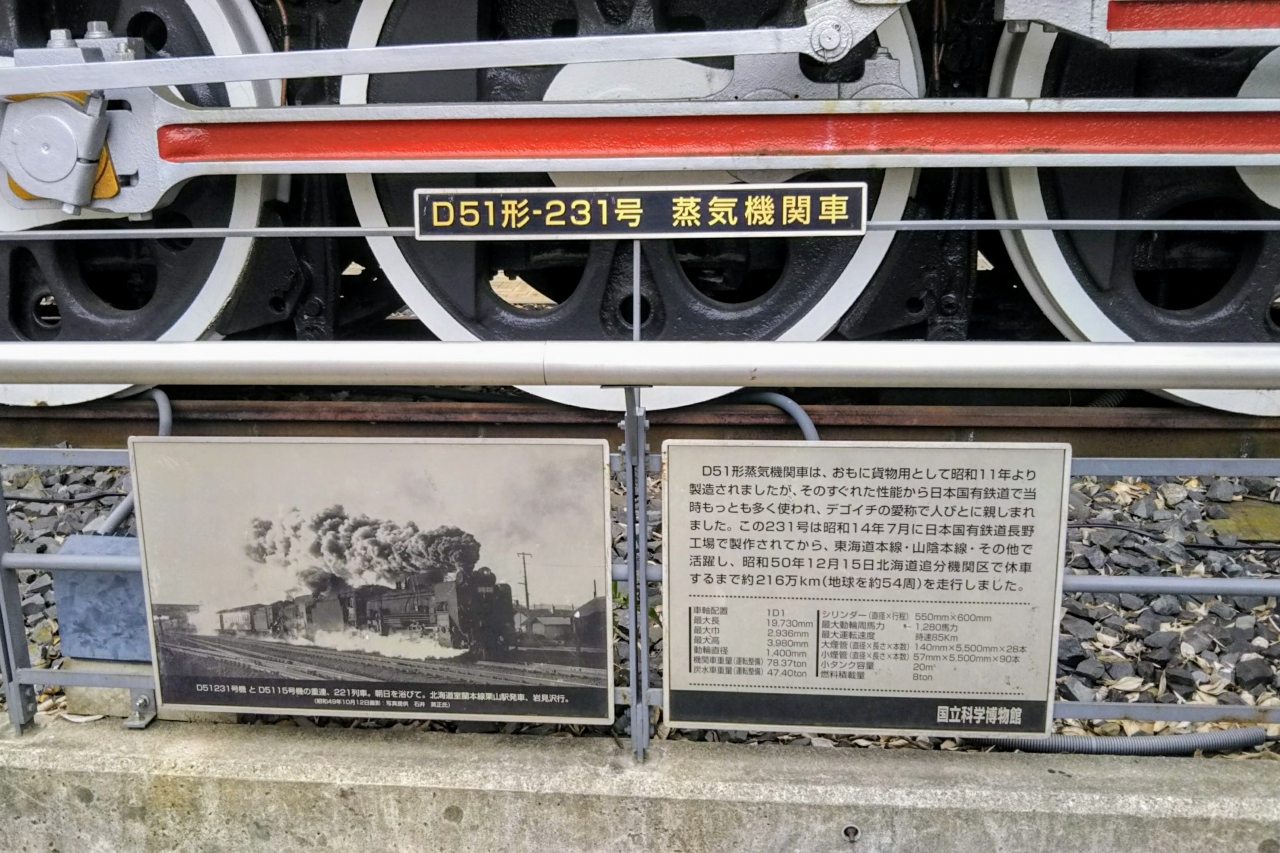 上野公園の国立科学博物館前で、屋外... 続きを読む展示されている旧国鉄のD51型蒸気機関車は、231号機になりますが、旧国鉄で最も多く活躍した蒸気機関車です。