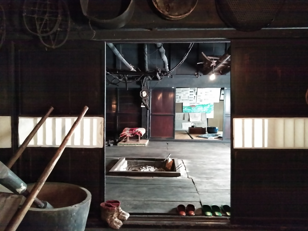 230年前に作られた、茅葺きの民家。中は意外と涼しく、冬の豪雪にも耐えたことを偲ばせてくれます。