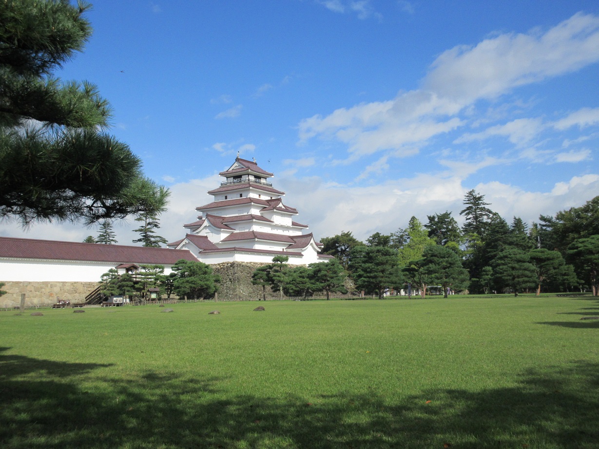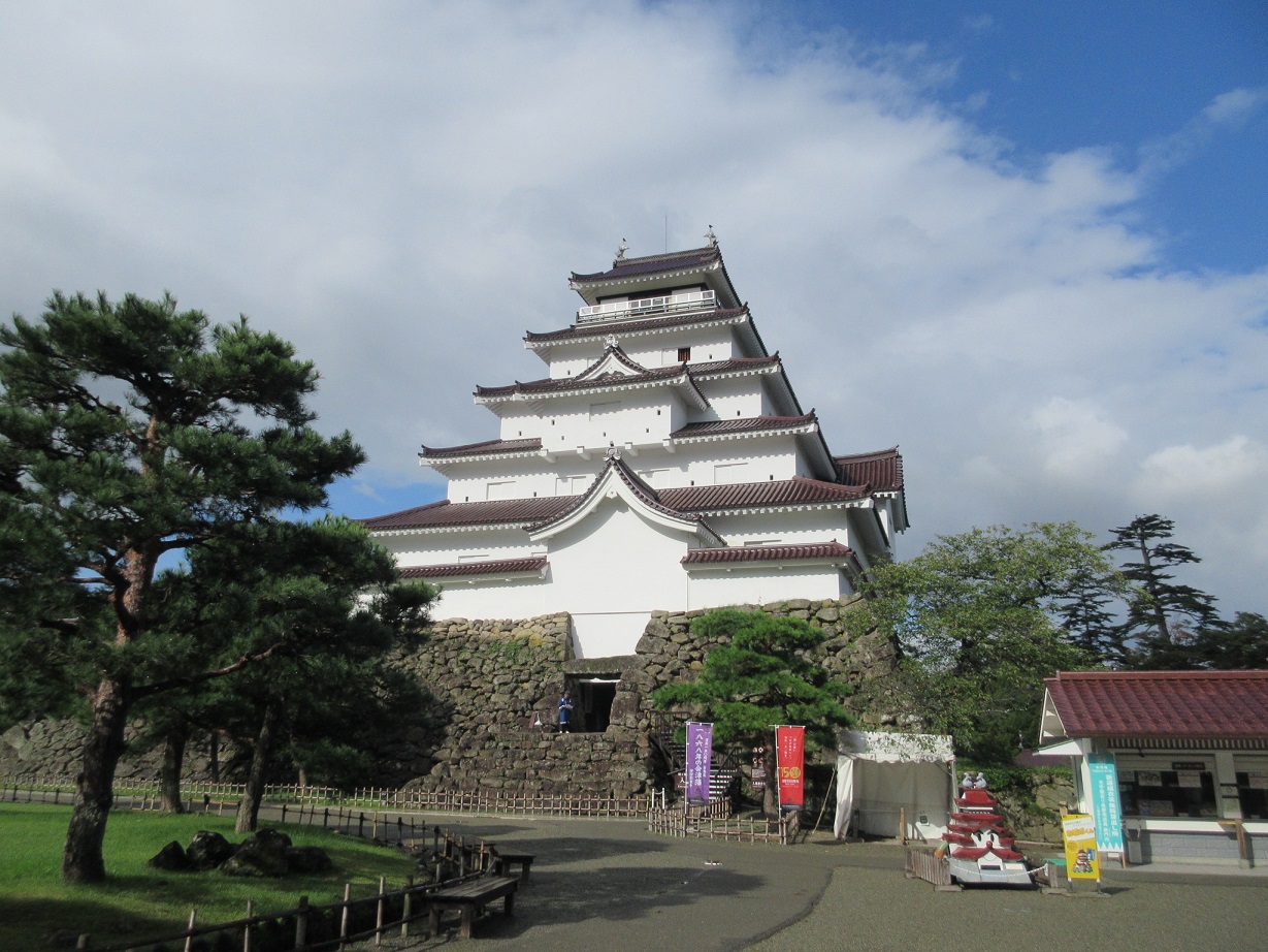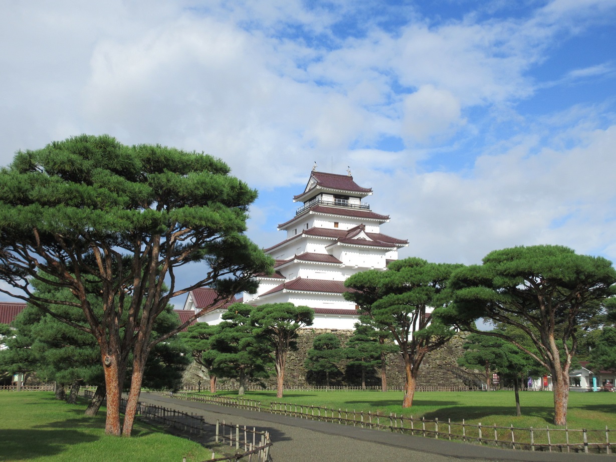 平成27年再建50周年を迎える鶴ヶ城は全国でも稀な赤瓦の天守閣として有名です。葦名氏七代直盛が至徳元年(1384)黒川城を築いたのが発祥。天正17年(1589)伊達政宗が葦名義広を追って会津を領するが、翌年豊臣秀吉に召し上げられ蒲生氏郷が入封、黒川城を大改修して鶴ヶ城と改称、城下を若松と名づける。その後、上杉、ふたたび蒲生、加藤氏と代わり寛永20年(1643)保科正之が入城、三代正容のとき松平氏を称し、子孫相ついで九代容保のとき戊辰戦争を迎える。現在の天守閣は昭和40年の再建。平成16年3月には天守閣内部がリニューアルされ、会津のシンボルとしての鶴ヶ城で会津の歴史を「学び、遊び、体験」できる「お城ミュージアム」として好評を博している。最上階は展望台になっている。◎葦名盛氏(1521-80)会津生れ。戦国大名。鎌倉幕府の名族三浦氏の裔。黒川城(若松)に拠り、畠山・田村・二階堂ら仙道諸家を攻略、葦名氏の全盛を現出。◎蒲生氏郷(1556-95)近江日野城主蒲生氏の出身。織田信長に仕え、功により伊勢松ケ島十二万石。松坂城を築き、城下町を営む。のち会津転封。◎上杉景勝(1555-1623)越後生れ。戦国大名。謙信の養嗣子。豊臣政権の五大老に列し、会津に転封。関ケ原の戦いに西軍に呼応、家康の打倒を図ったが敗戦して米沢へ移封。◎保科正之(1611-72)江戸生れ。江戸前期の大名。徳川家光の異母弟。初め信州高遠藩保科家の養子。のち会津藩祖となり四代将軍を補佐。その「家訓」は藩風形成の基となる。◎松平容保(1835-93)江戸生れ。幕末の会津藩主、京都守護職に任ぜられ公武合体を推進。意に反して鳥羽伏見の戦いで朝敵とされ、会津戦争に突入。ろう城1カ月、開城後降伏。