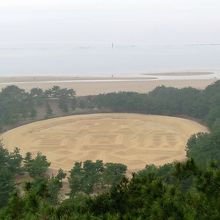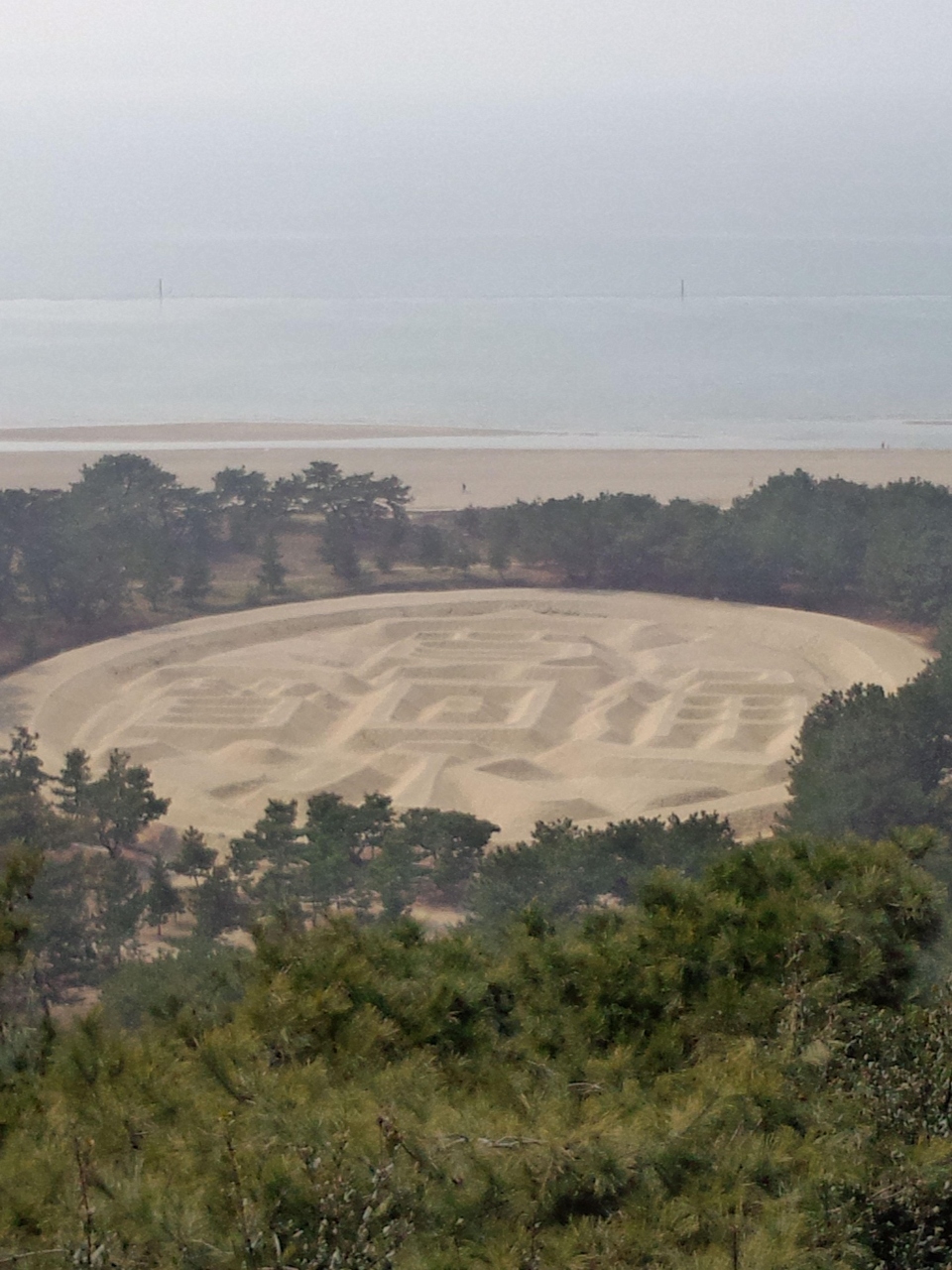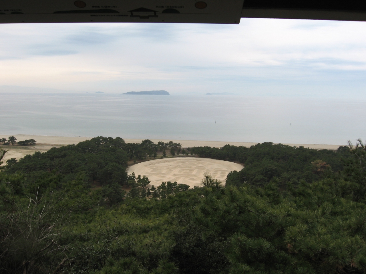 展望台から見降ろす白砂に描かれた巨大な砂絵「寛永通宝」はまさに圧巻!!お遍路のツアーで来ているらしい方々は、口々にご利益を願いながら拝んでいらっしゃいました(笑)