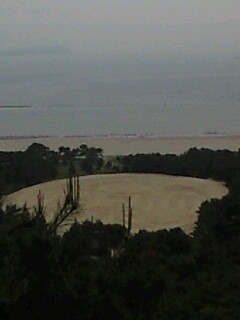 この砂絵の向こうは瀬戸内海で、かすかに島影が見えていました。