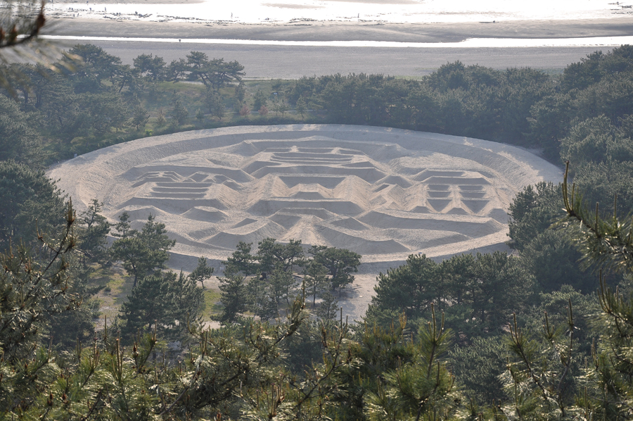 寛永通宝というお馴染みの貨幣を砂で作るという発想にも夢を感じますし、それが東西122m、南北90mという巨大なものである... 続きを読むことにエネルギーを感じます。またそれを維持するために年2回、市民の手で砂を盛り直し続けているということにはロマンを感じます。