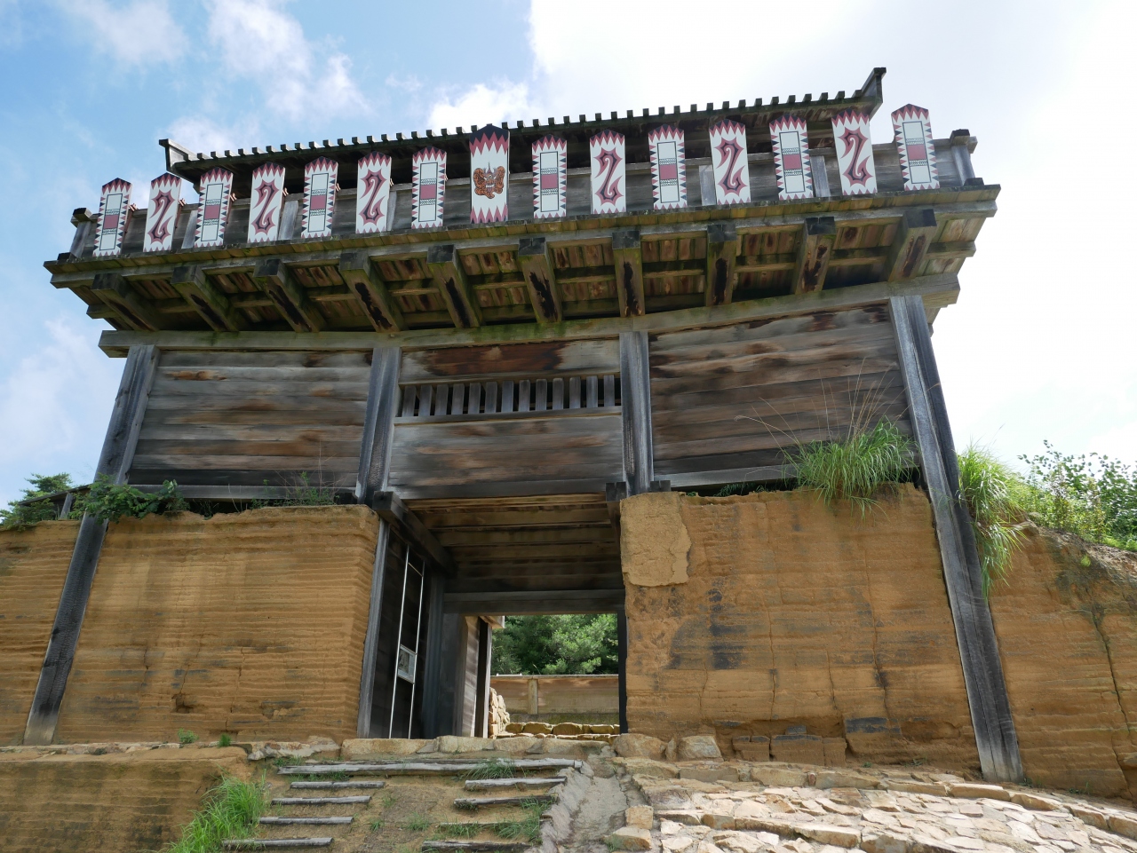 西門が復元されており、温羅の出身地である百済を連想する、異国情緒の残る建物です。