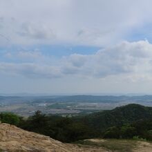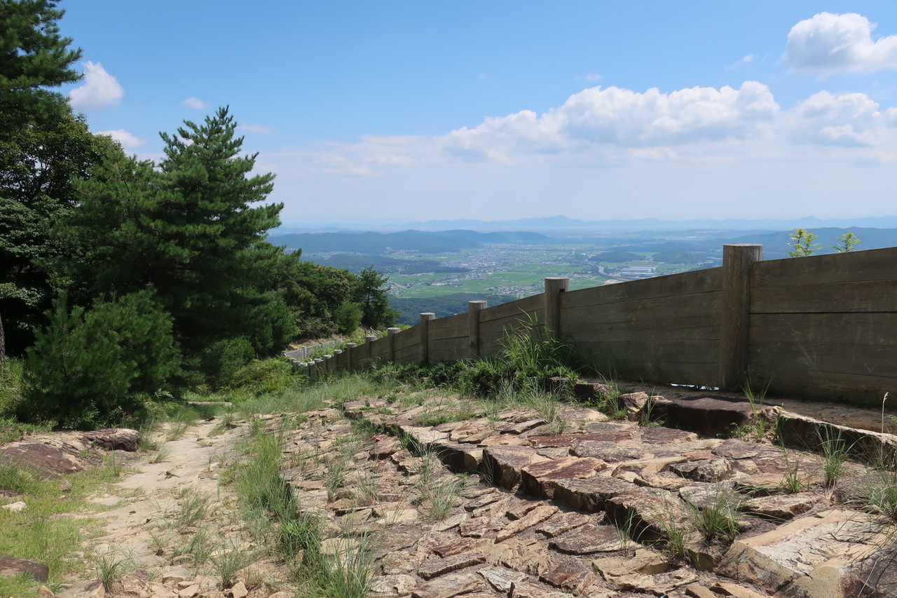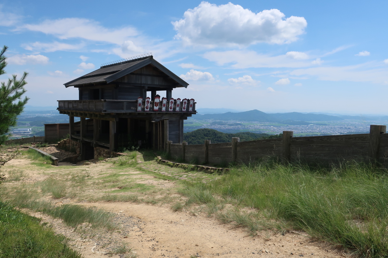 駐車場から鬼ノ城に向かうと、最初に出くわす建築物が復元された西門で、このあたりからは、眼下に総社平野、岡山平野西部などが一望でき、それだけでもここまで来た甲斐はあったかなと思えた。
