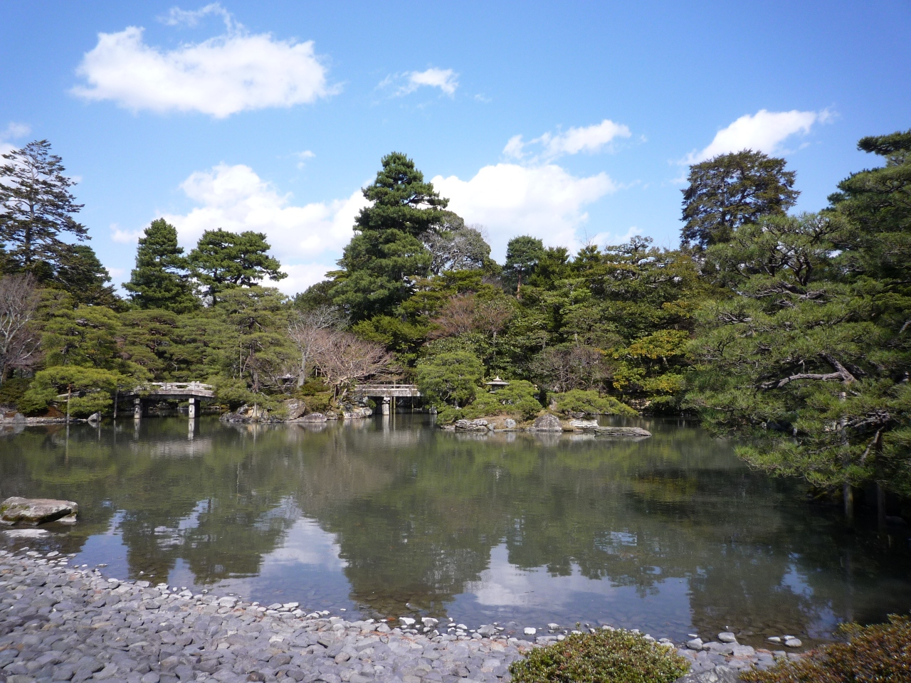 これまで幾多びか四季折々の違う季節に参観しましたが各殿舎に意図的に配置された草花や御池庭の木々が季節毎の雅な雰囲気を醸しだしています。