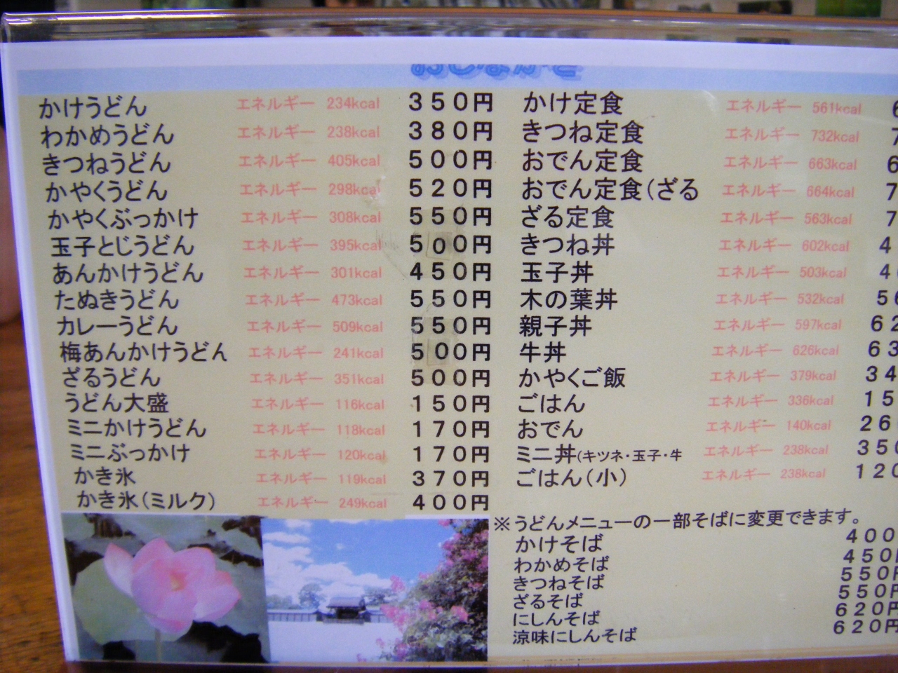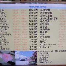 左側はおうどんやかやくご飯などの和風メニユーです。