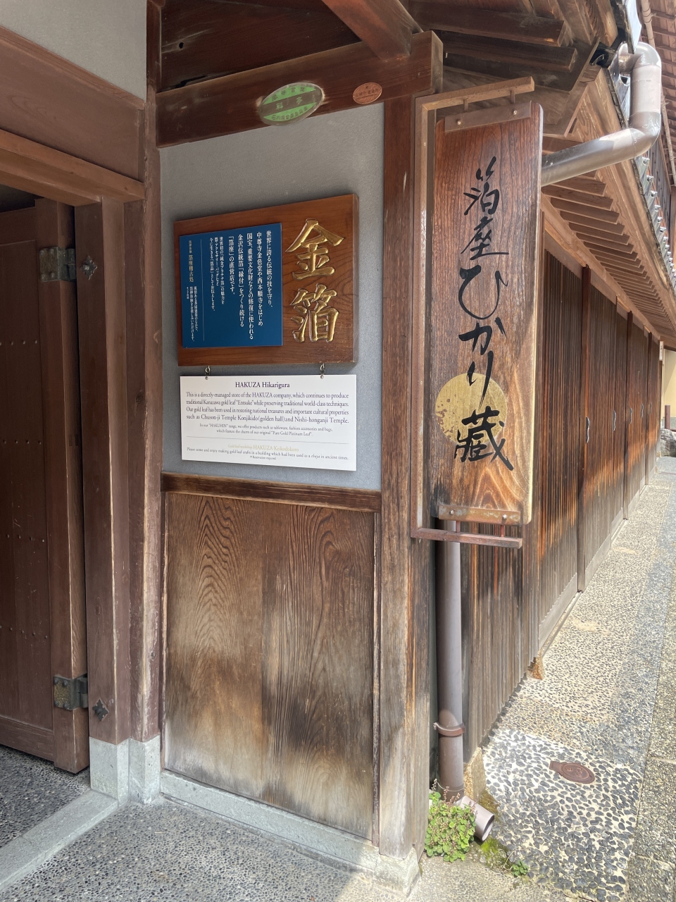 「金箔屋さくだ本店」は、大正8年(1919年)の創業で、金箔や金沢箔を使用した小物の販売店です。。「ひがし茶屋街」で、金沢ならではの手作りの「金箔貼り体験」をしたいなら「金箔屋さくだ本店」がおすすめです。金箔職人による金箔製造工程の説明や箔の作業を間近で見ることができます。また、店内には雅やかな金屏風の展示や金箔・プラチナ箔の化粧室があります。金箔コスメ、金箔工芸品、金箔入り食品等、さくだオリジナル金箔グッズも豊富に取り揃えています。オリジナル金箔作品作りができる「金箔貼り体験」もあります。箸や小箱、コンパクトミラーなど自由に選んだ小物に、オリジナルデザインの金箔を貼った、世界に1つだけのおみやげを作ることができます。また、金箔を1枚贅沢に巻き付けたアイスキャンディーもあります。