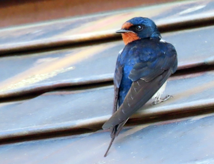 玄関を入ると朱色のピカピカの階段あり、二階の天井は群青色で、非常にインパクトがありました。