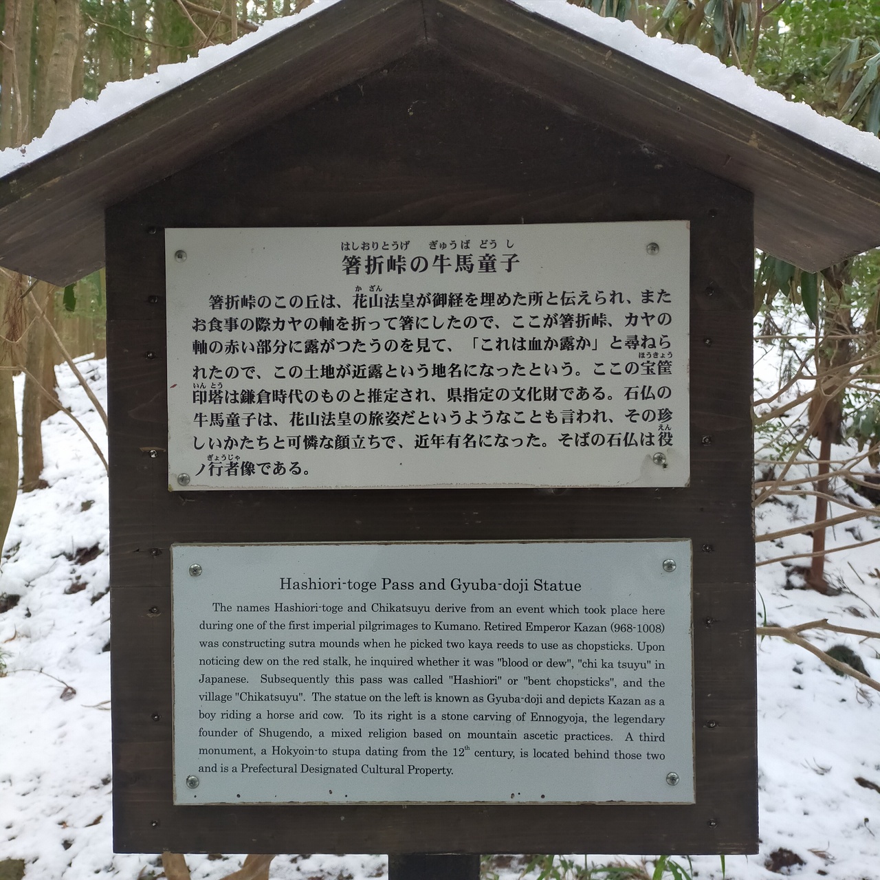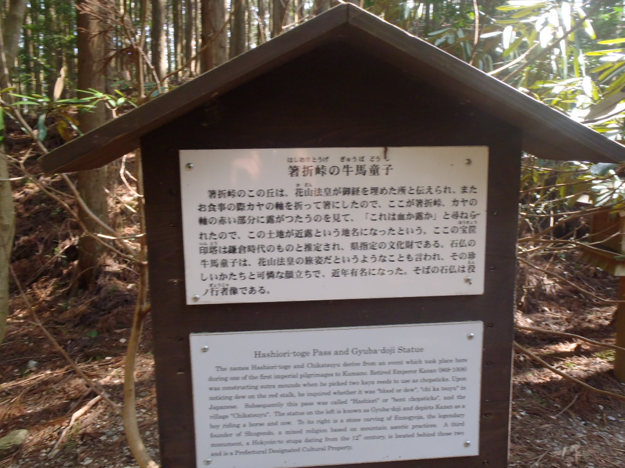 そのルートの途中にあるのが牛馬童子像で、牛馬... 続きを読む童子バス停そばの道の駅;熊野古道中辺路に車をおいて歩いても往復1時間弱で見に行くことができます。