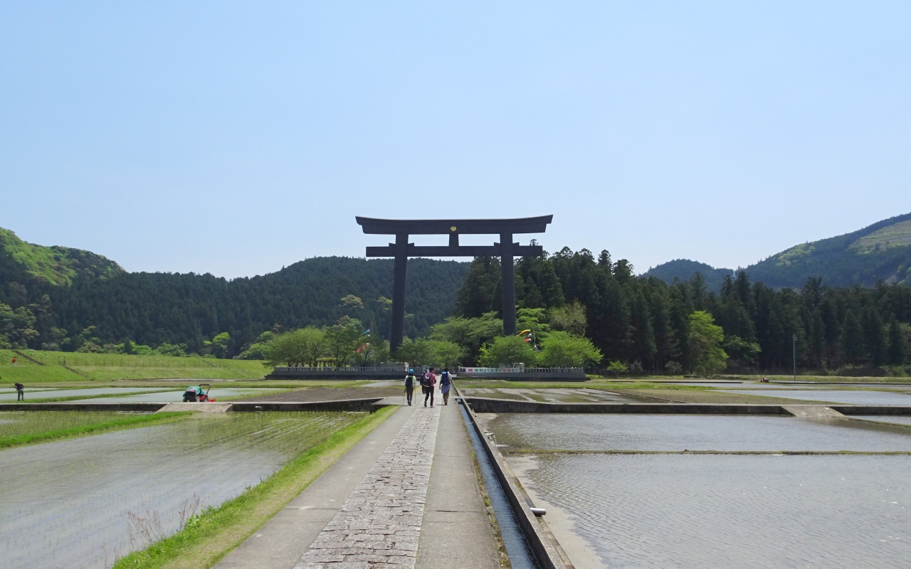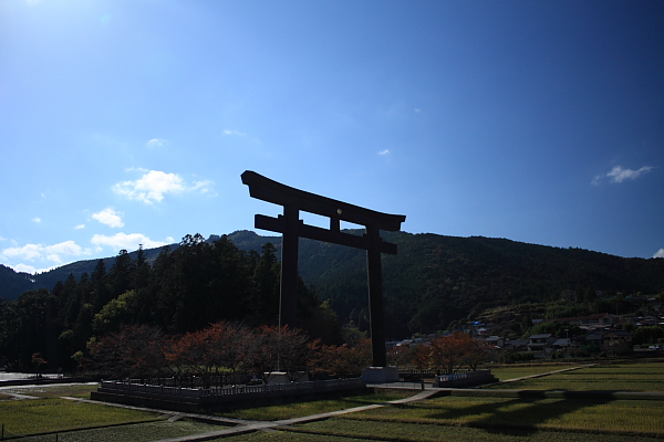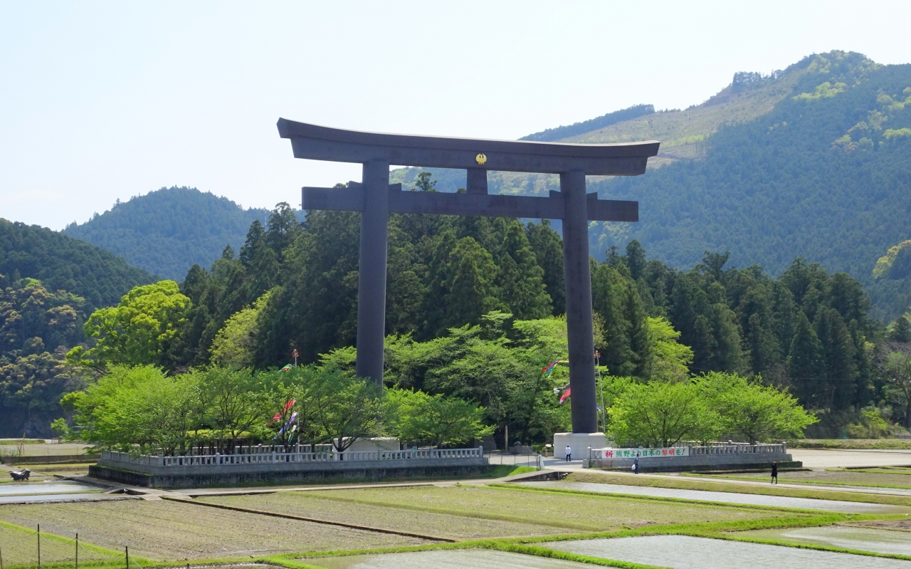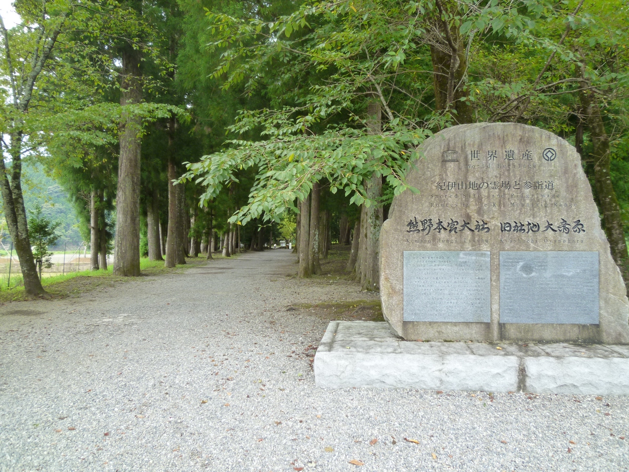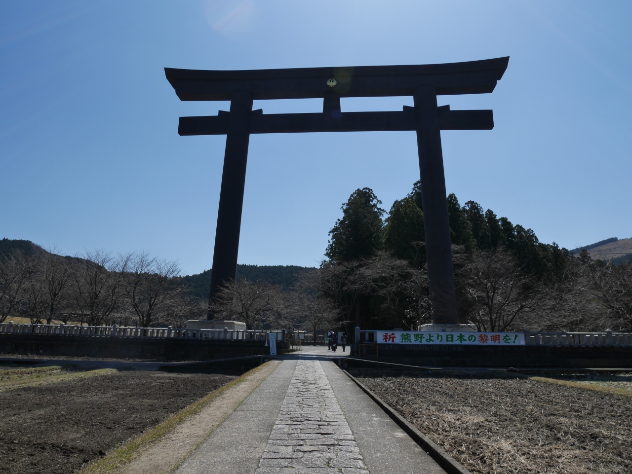 熊野... 続きを読む本宮大社の入り口付近に『大斎原 徒歩5分』と書かれた案内板があり、その方向に従って、道路を渡って進んでいくと、大きな鳥居が見えます。その背後のこんもりとした森が大斎原です。大鳥居は、高さ約34m、幅約42mもあって周りが田んぼということもあり、その存在が遠くからも確認できます。大斎原には社殿などの建物は無く、石の祠や狛犬があるのみで一見公園のような感じがするところですが、パワースポットと言われるだけあって心が洗われるような雰囲気のあるところでした。熊野本宮大社を訪れたら、是非、訪ねられることをオススメします。